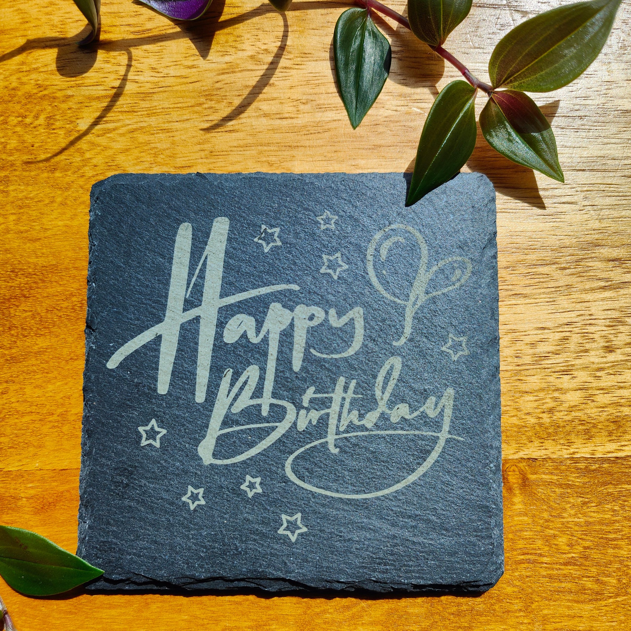 Happy Birthday Laser Engraved Slate Or Wood Coaster