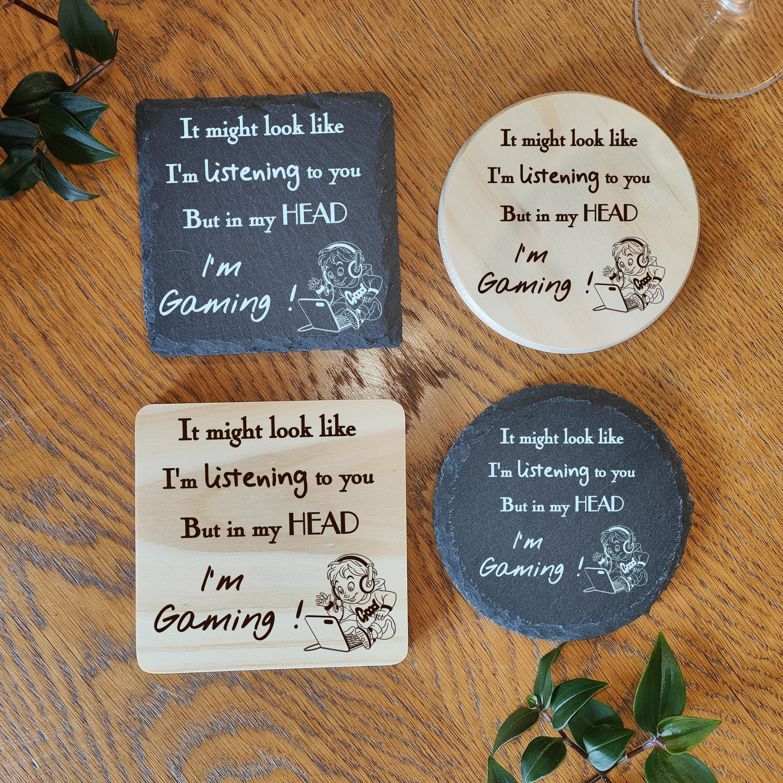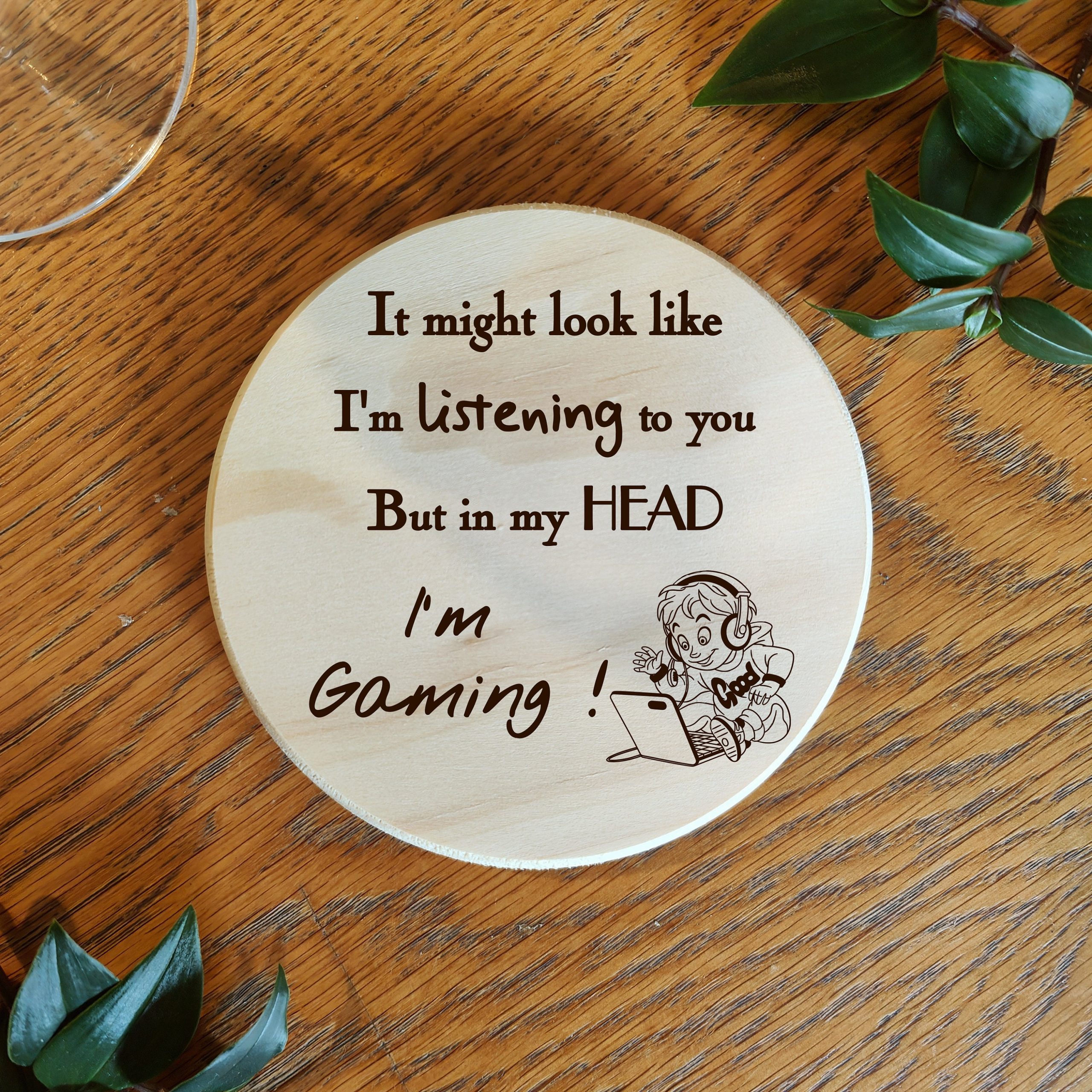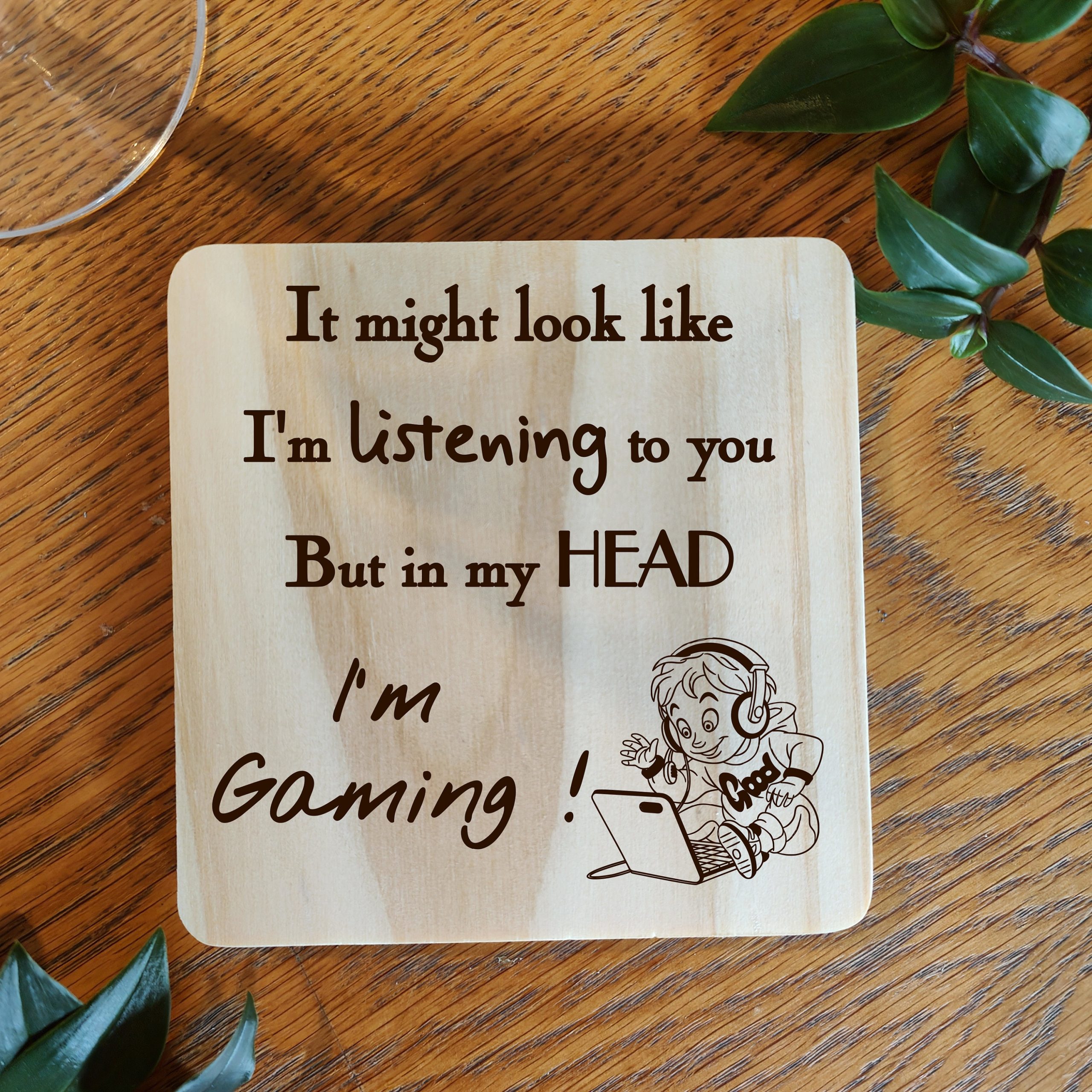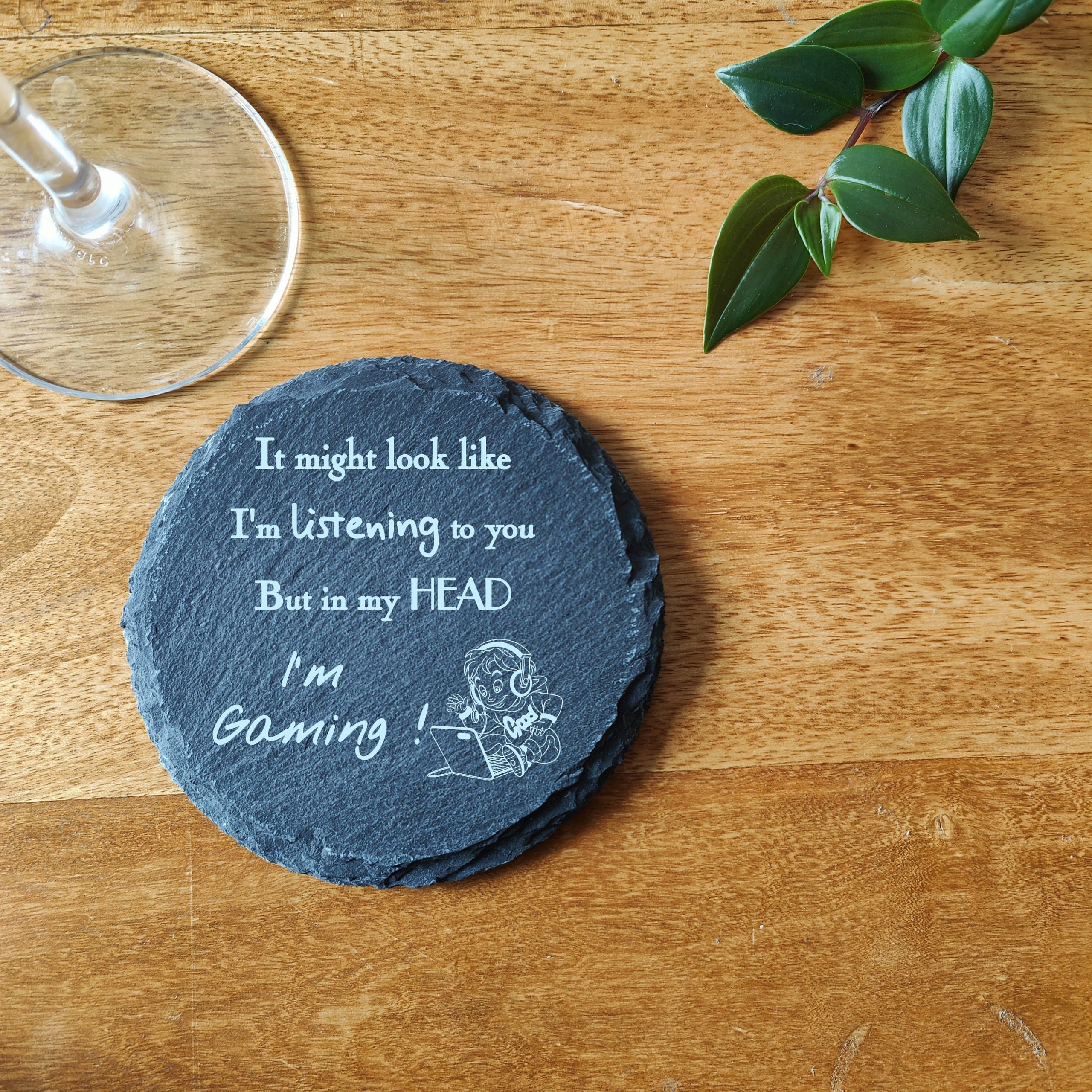 This adorable coaster is ideal for the gamer who can’t tear themselves away from the console, whether its a games console or a computer they would rather be gaming than doing anything else. So if you have a gaming addict then this would make an ideal gift for a Birthday, Chrstmas or any occasion you can think of. Choose from Natural slate or solid pine wood on either a round or a square coaster.