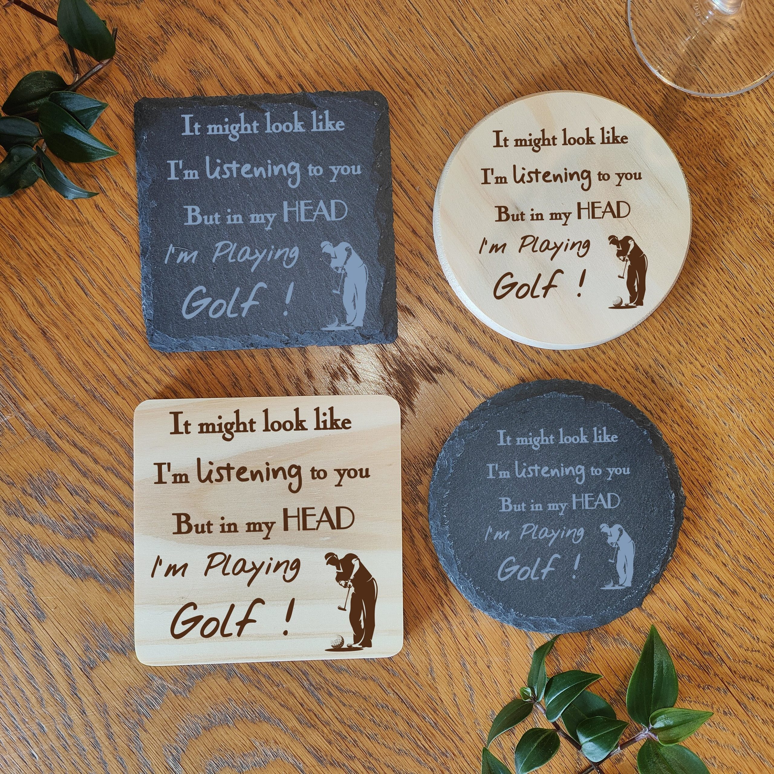 Laser Engraved Slate Coaster: Funny Golf Gift