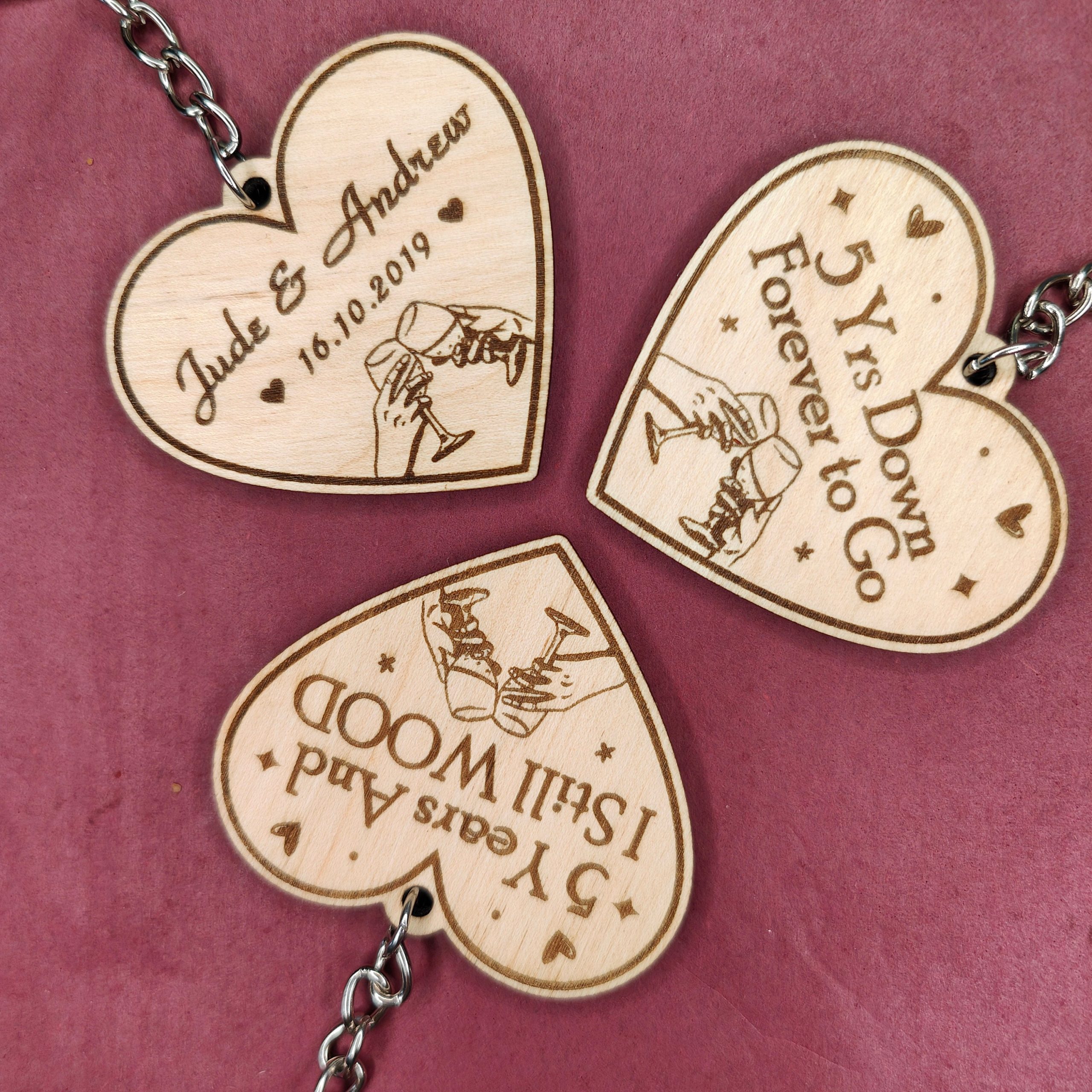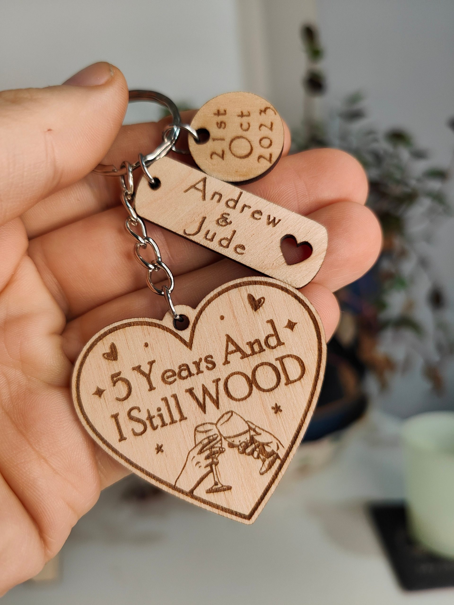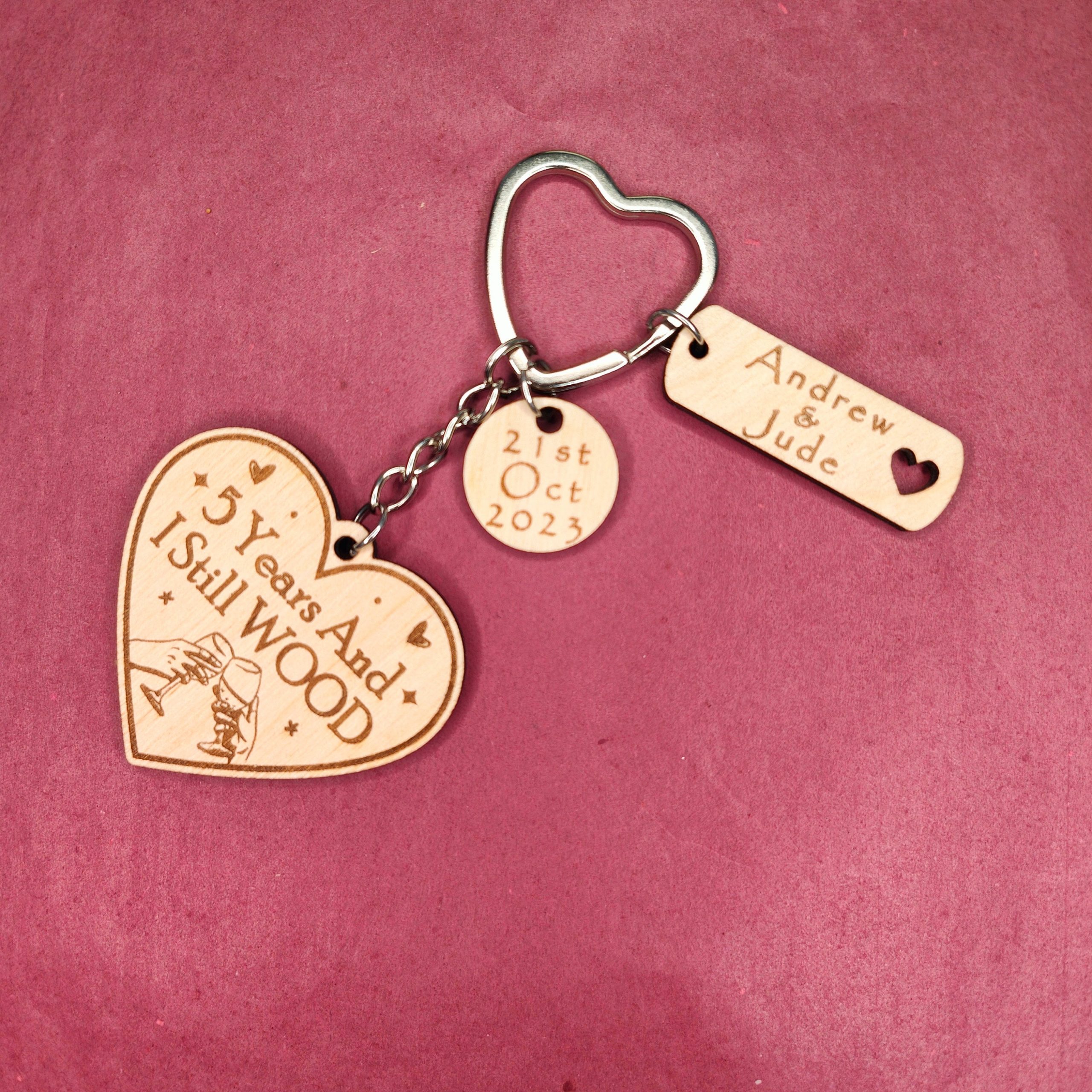 1 x Wooden Heart Engraved Anniversary Keyring