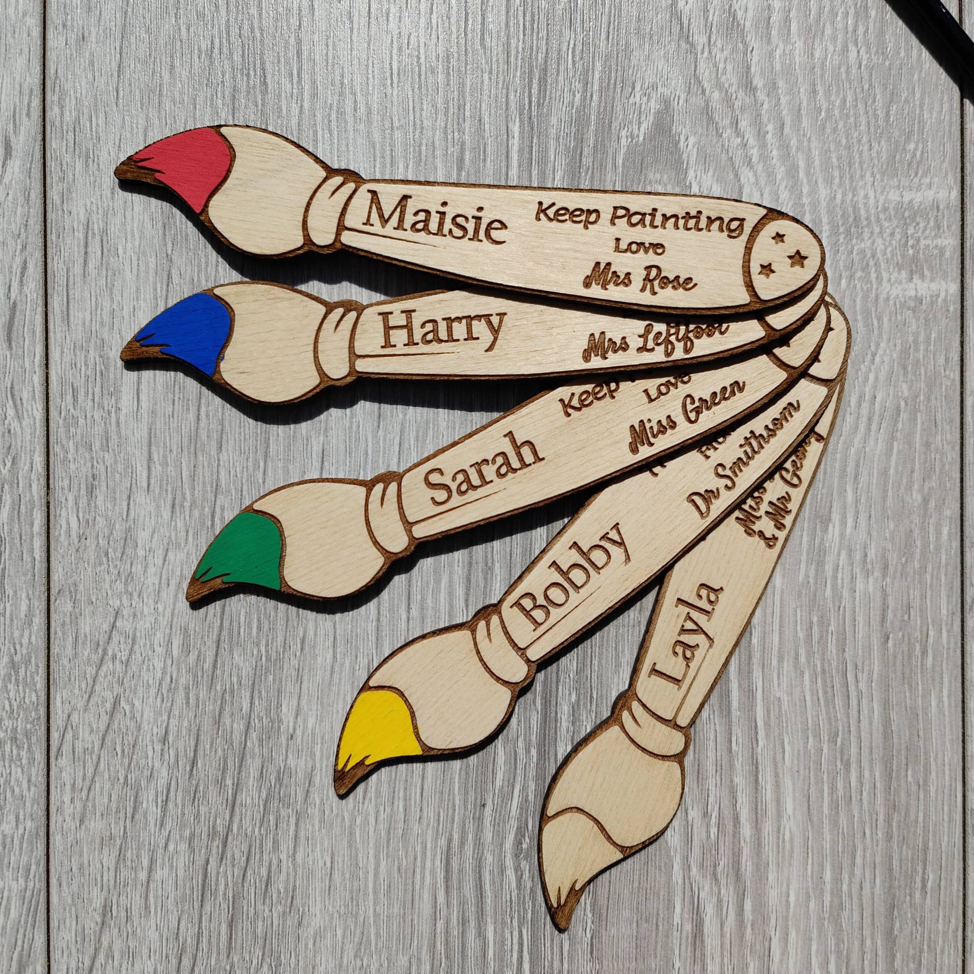 Personalised paintbrush bookmark class gift from teachers to their students. Great End of term Gift.
