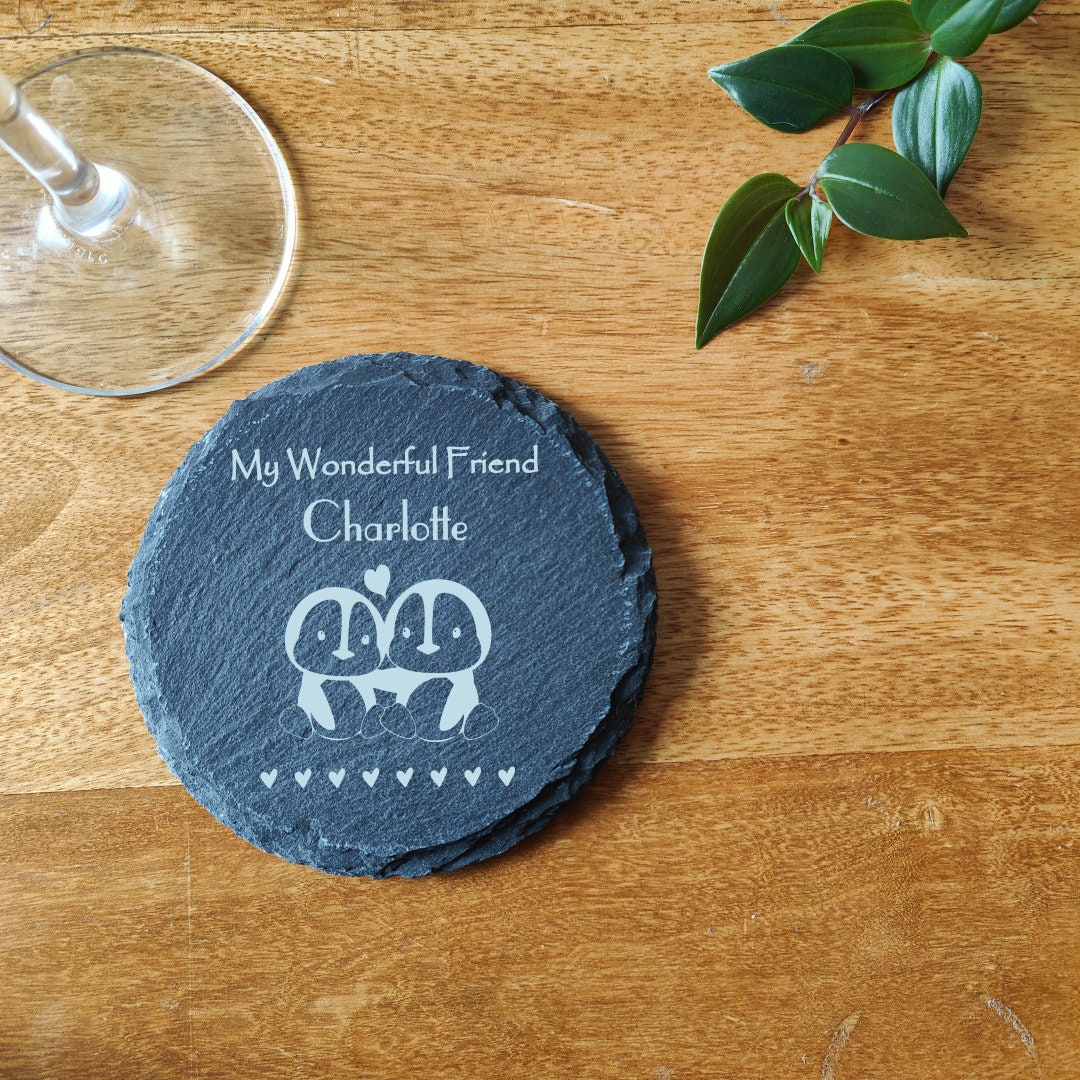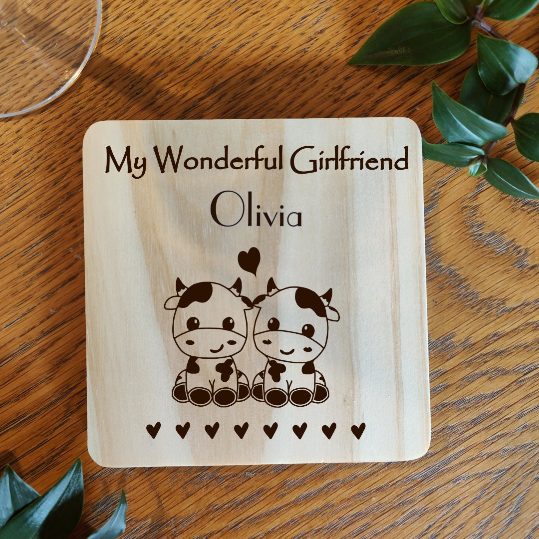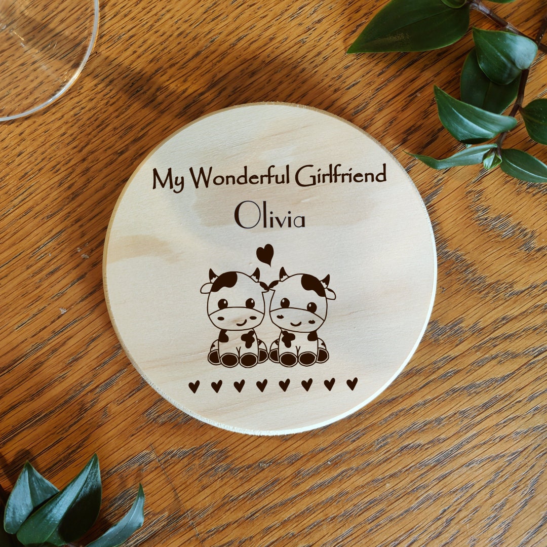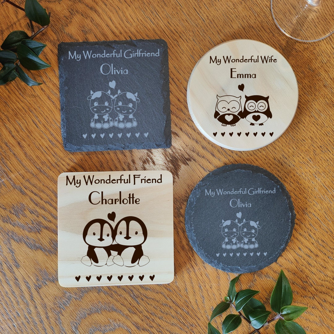 This adorable couples coaster will make the perfect Valentines gift. There are 3 animal design couples to choose from, cow, penguin and owl. You can personalise it with the names of the recipient for that extra special touch. Choose from Natural slate or Solid Pine Wood. Ideal for Valentines day, but you could easily be for a Birthday, Anniversary, Christmas or even something for your bestie to show how much you care. Just add a note in the personalisation section or drop us a message.