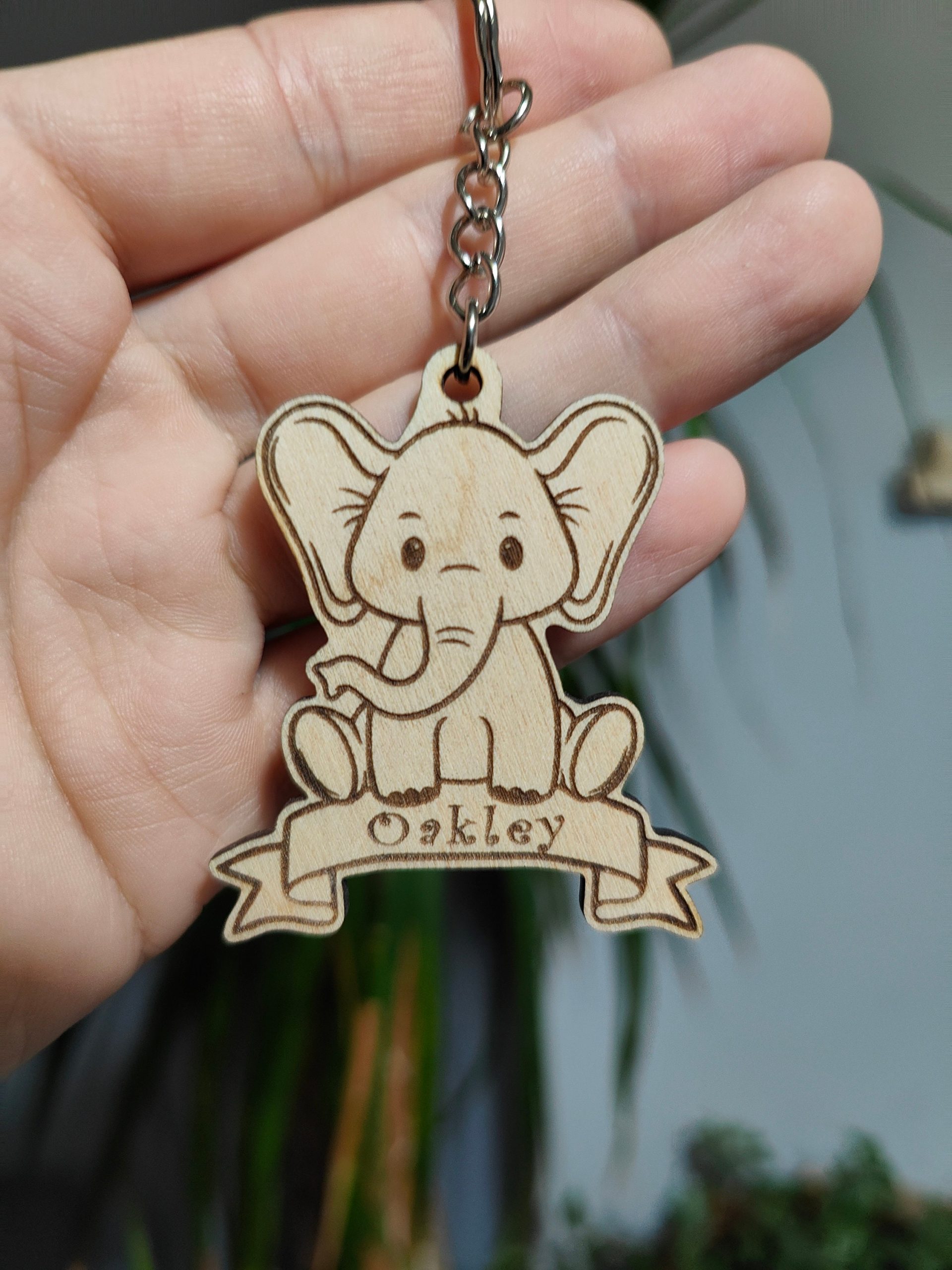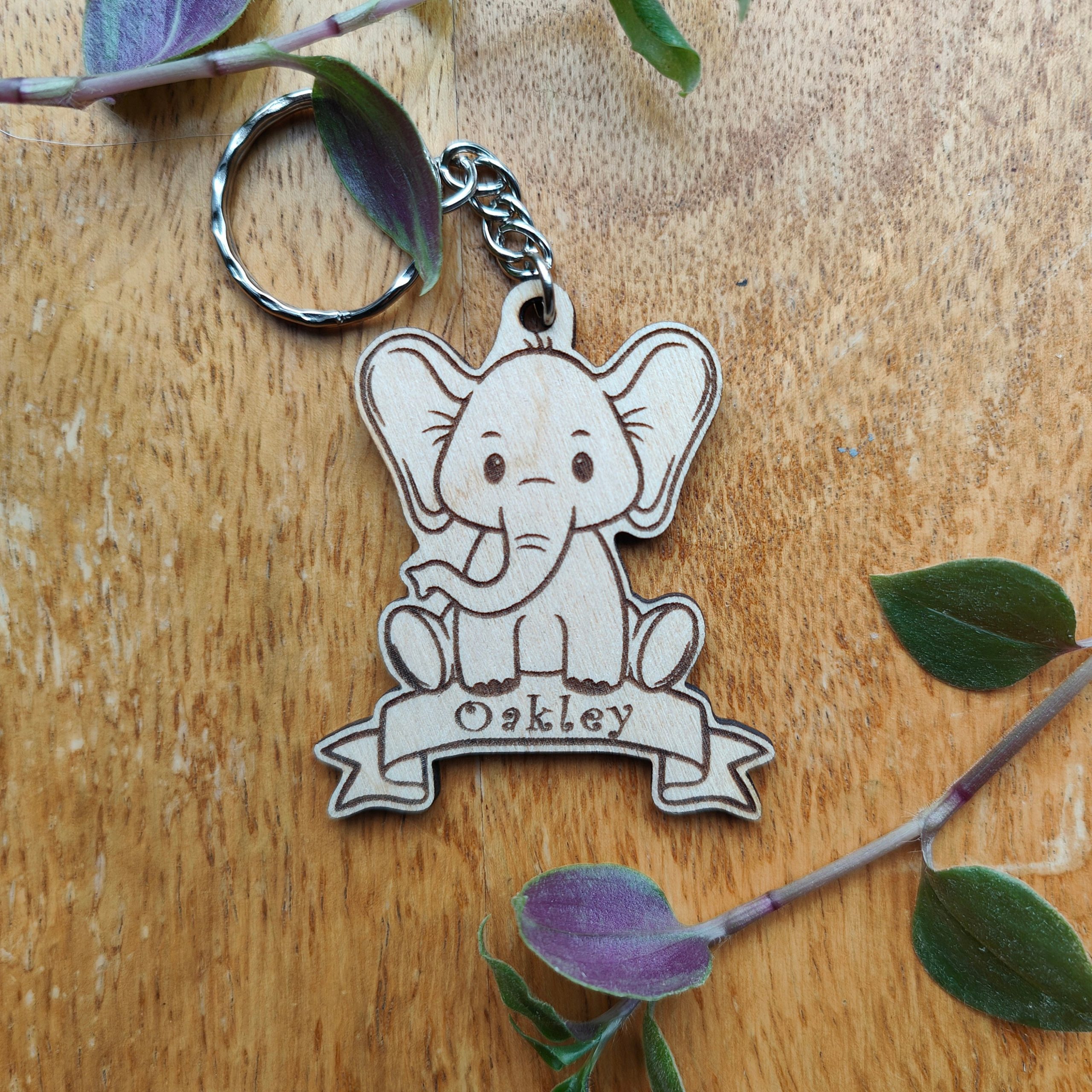 Personalised Elephant Keyring: Engraved Wooden Animal Bag Tag
