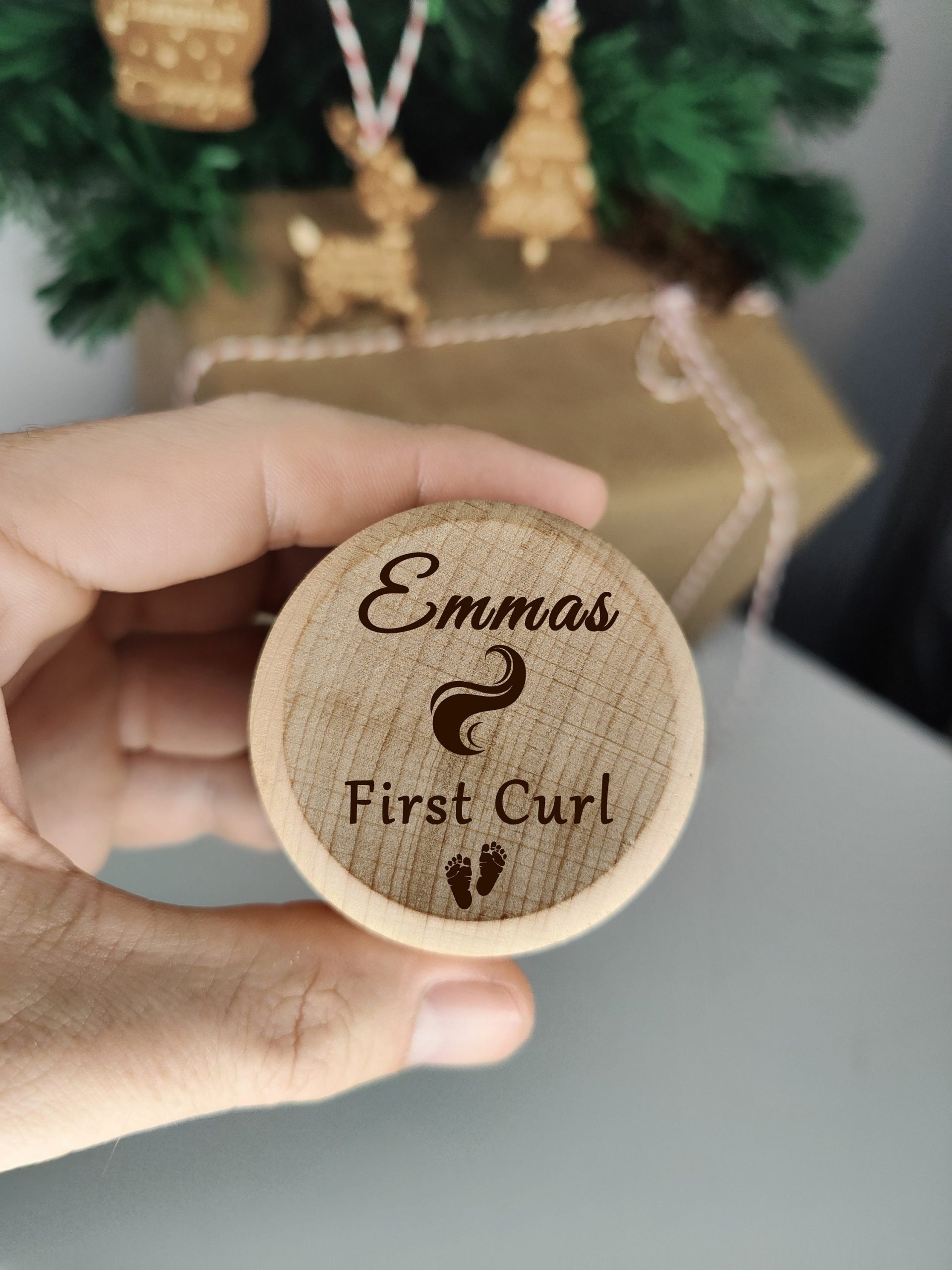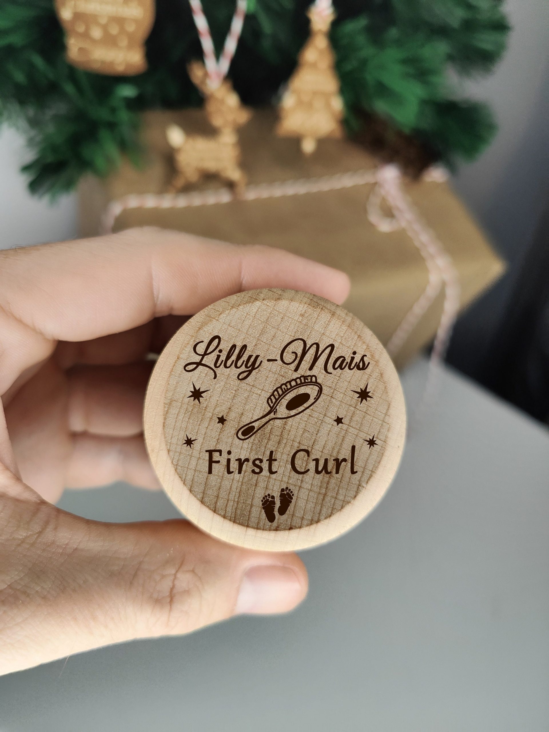 This Cute little round wooden box is perfect for keeping that treasured 1st curl safe. Choose from three designs and personalise it with the childs name for that extra special touch.