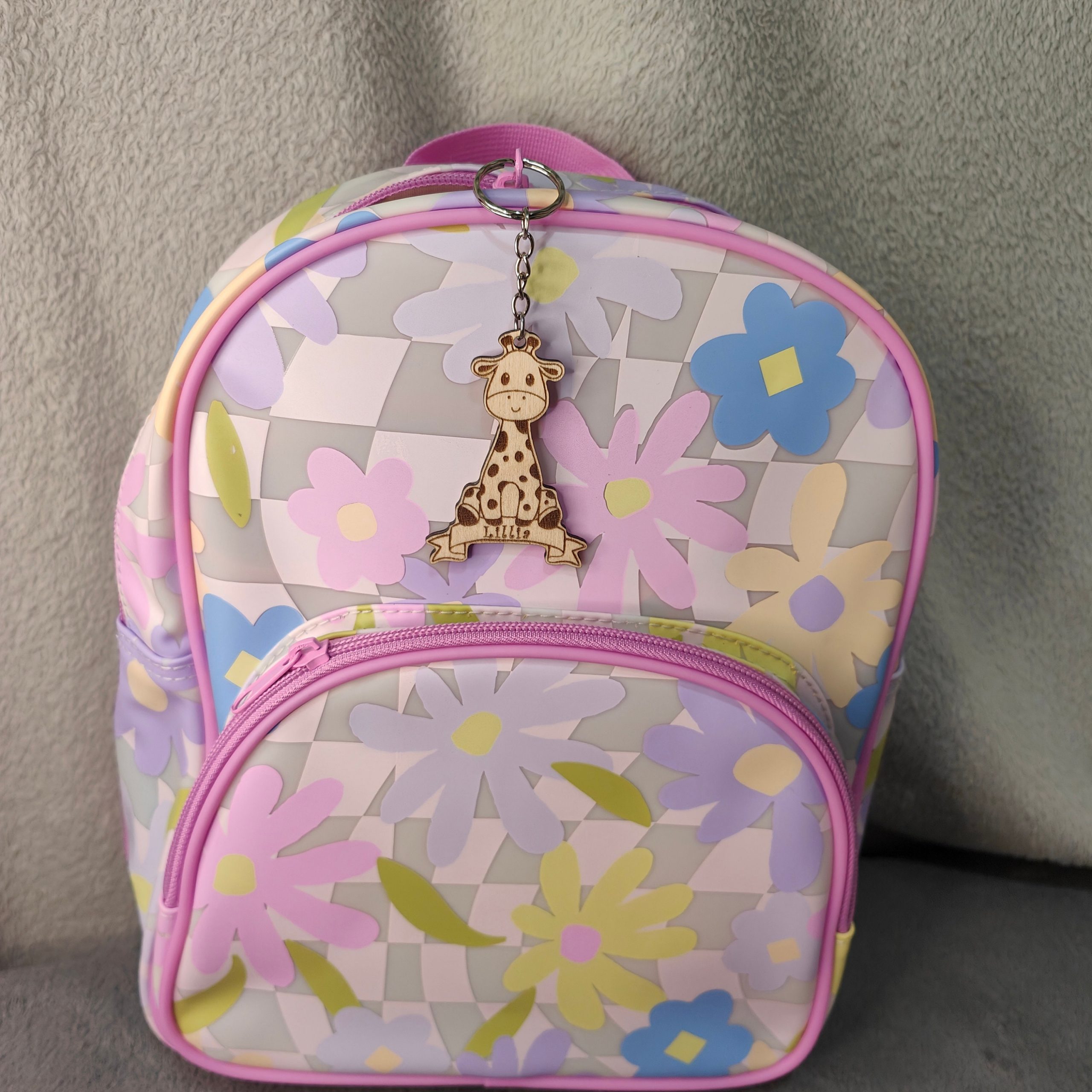 This adorable giraffe keyring makes a fantastic gift for any occasion, whether its a birthday, christmas, anniversary or just somewhere new to keep you keys. This cute giraffe keyring can be personalised with any name and so makes a great back to school gift. It is ideal as a childrens bag tag, so the child can easily spot which book bag is theirs when they’re in reception and haven’t learned to read just yet. They spot the giraffe on their book bag tag and know which one is theirs. So whether it’s back to school or back to nursery, this bag tag is not only adorable but helps children identify their belongings. We have several animals available on other listings which are also available as bookmarks or fridge magnets. If you don’t see the animal you are looking for, drop us a message as we would be more than happy to find something for you.