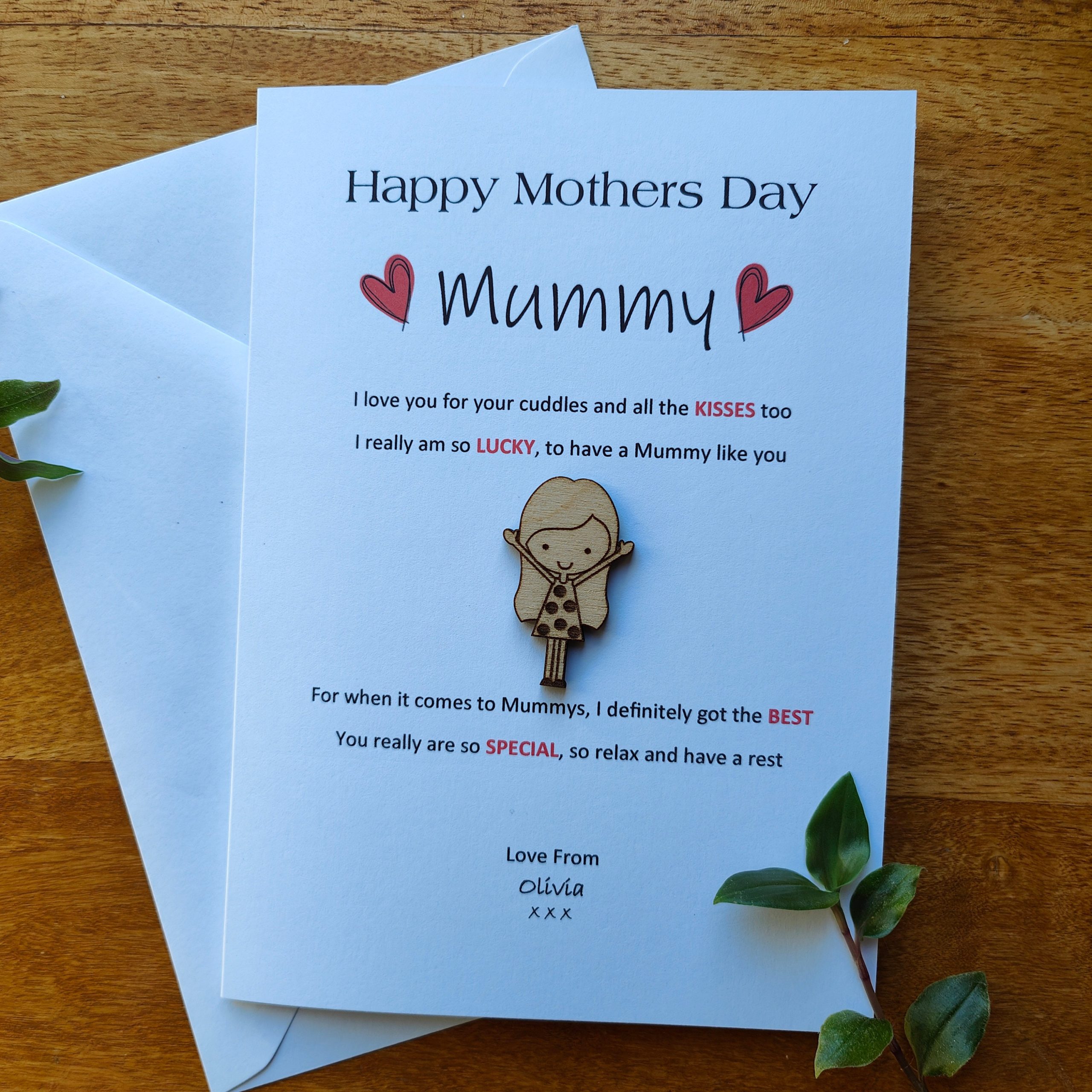 Personalised Mothers Day Card, Floral Keepsake Token, For Mum