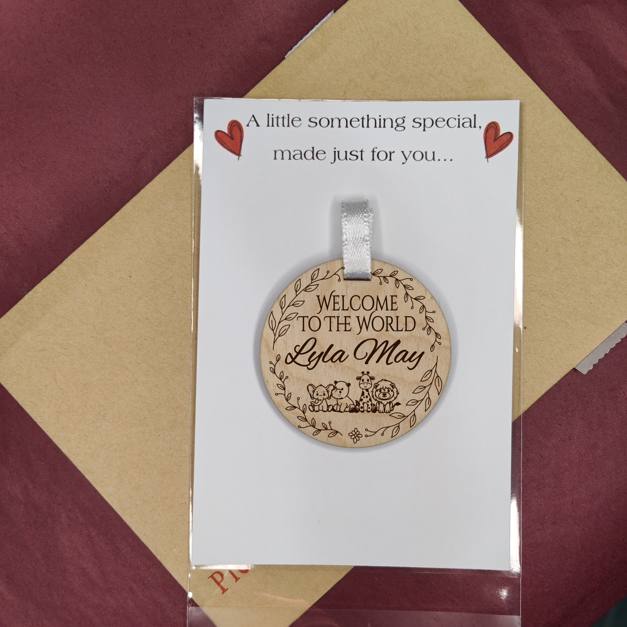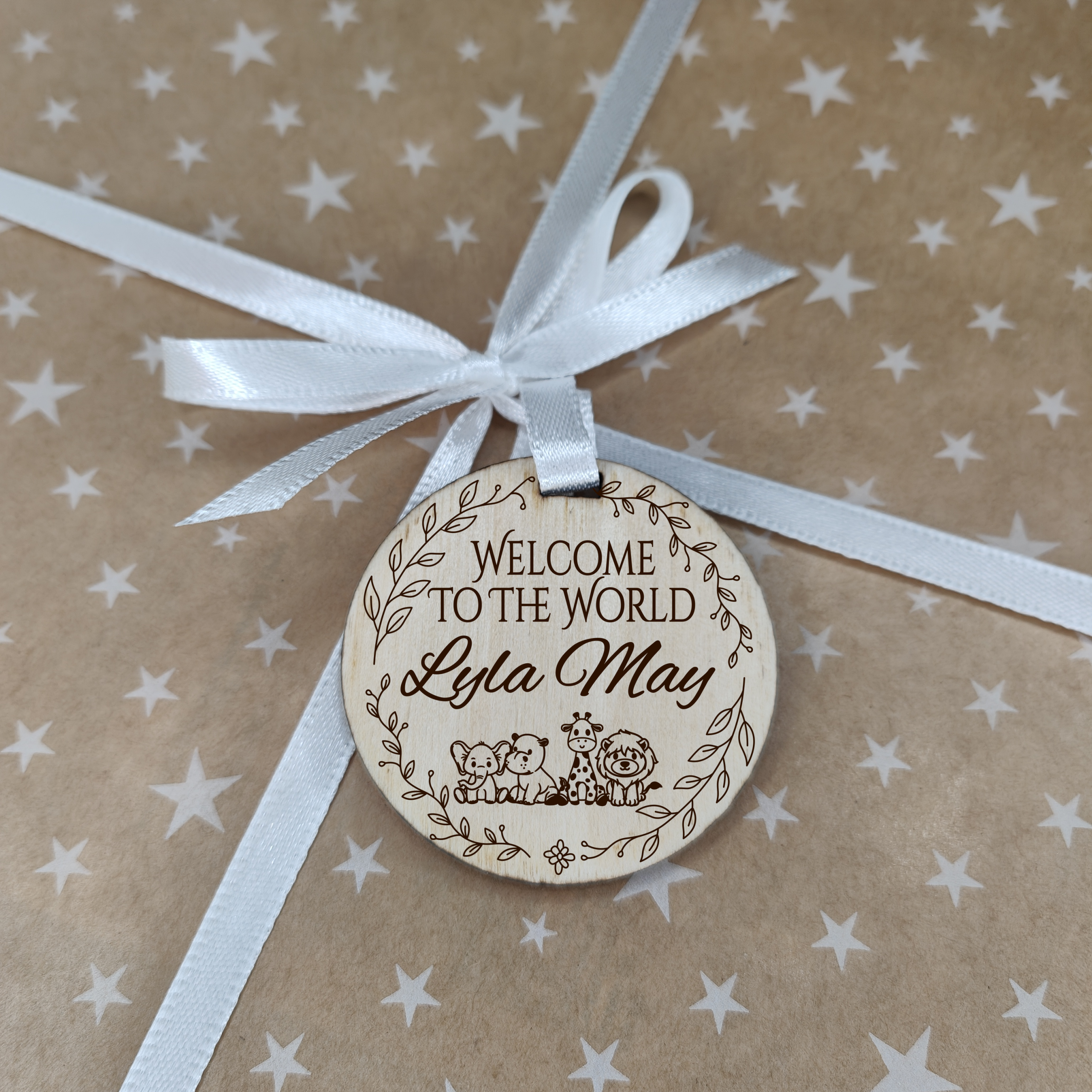 Personalised New Baby Gift Tag Label Welcome to the World Gift My Name is Baby Arrival Gift