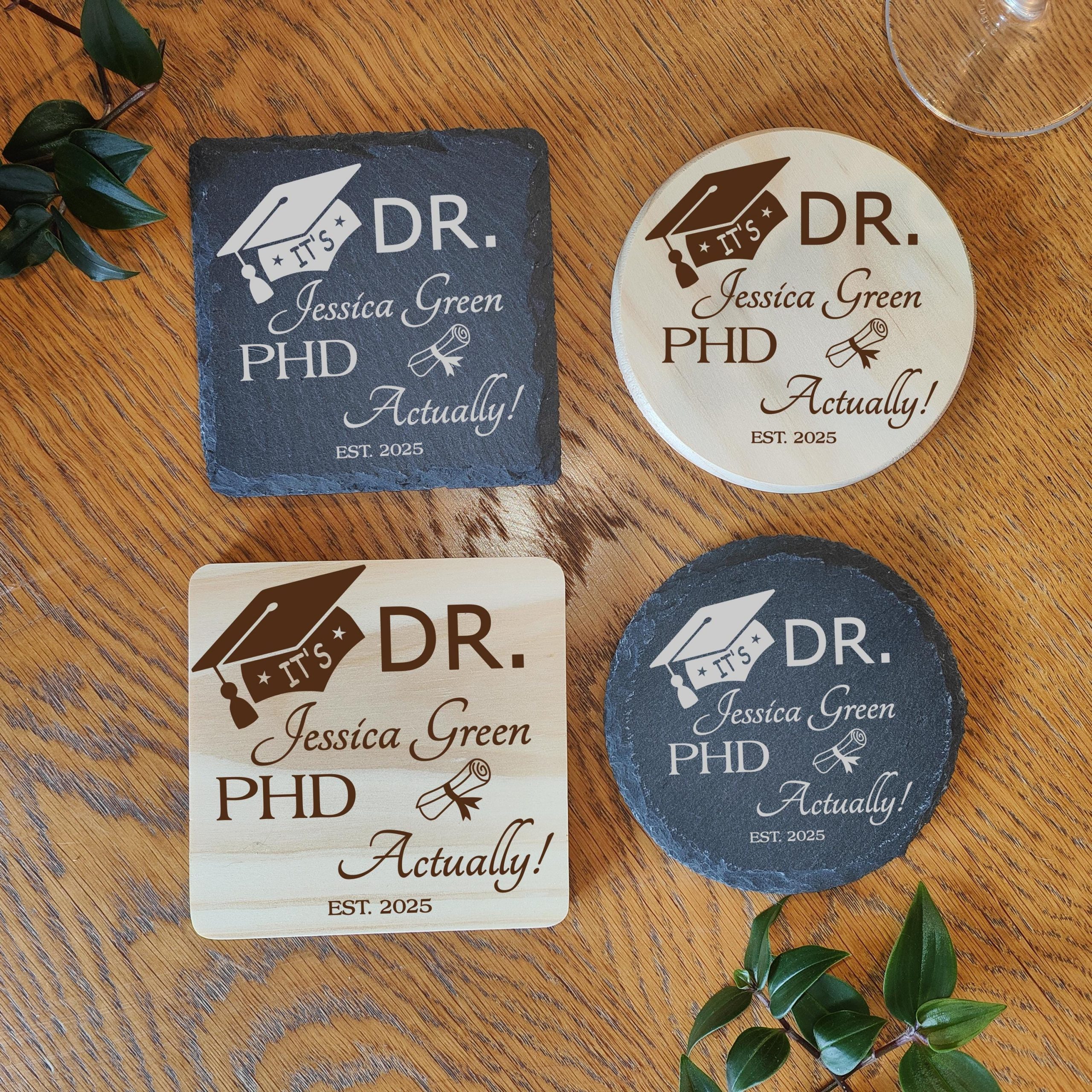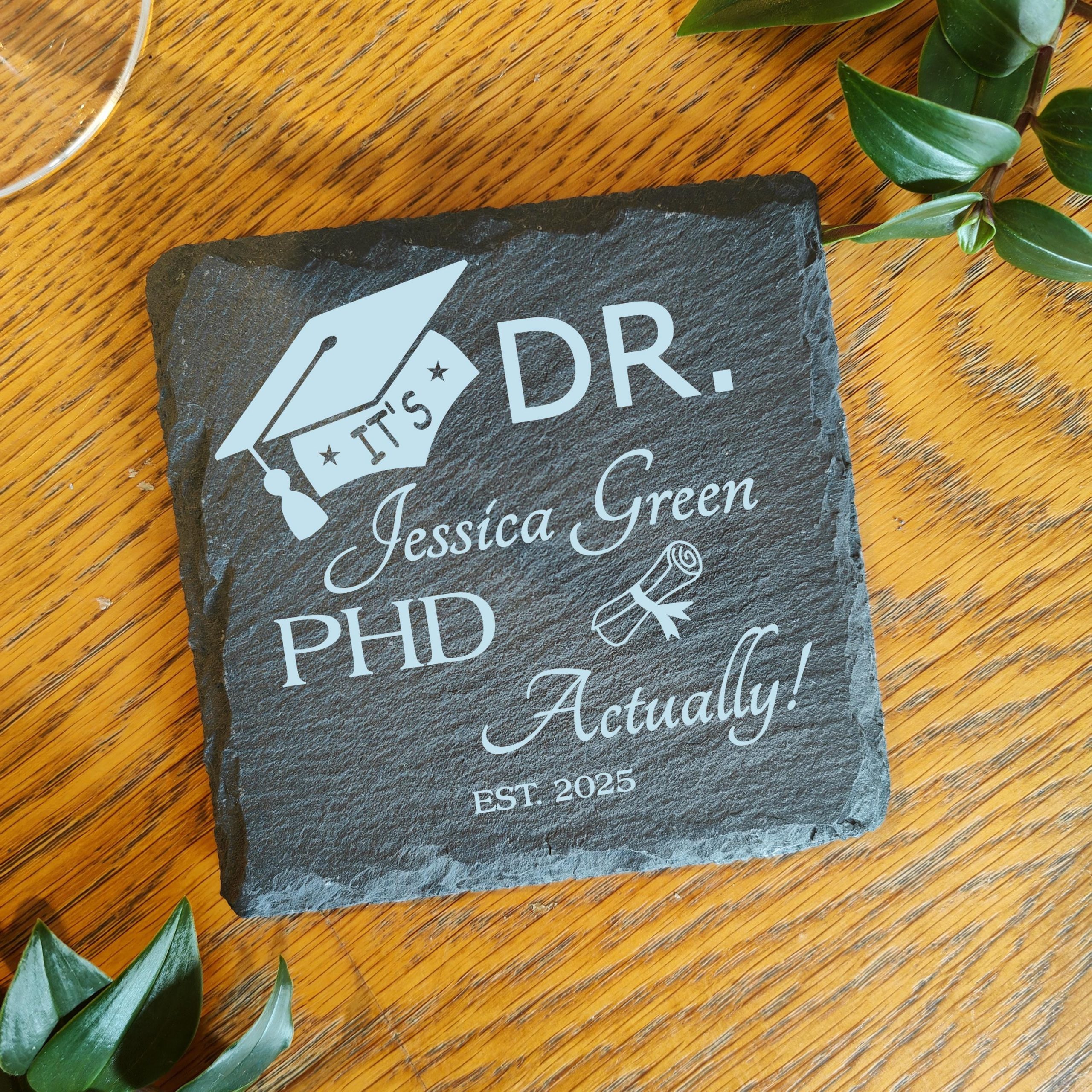 Personalised PHD Graduation Gift, Laser Engraved Slate Coaster