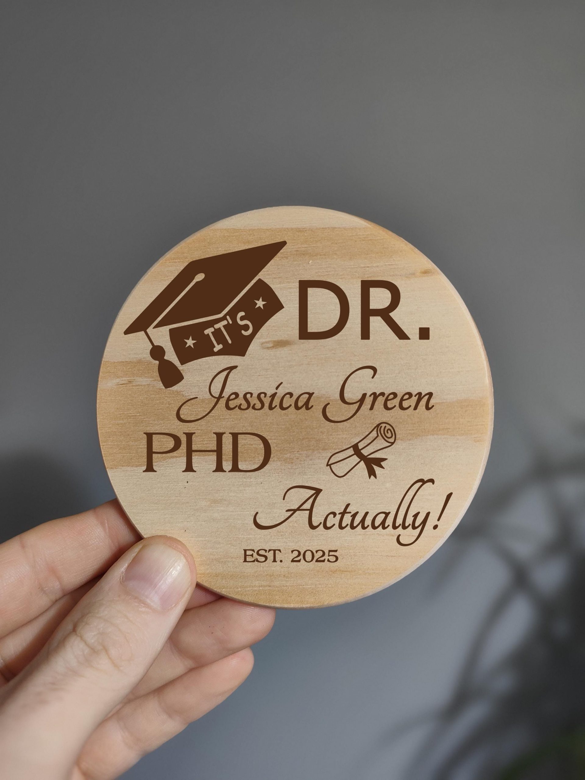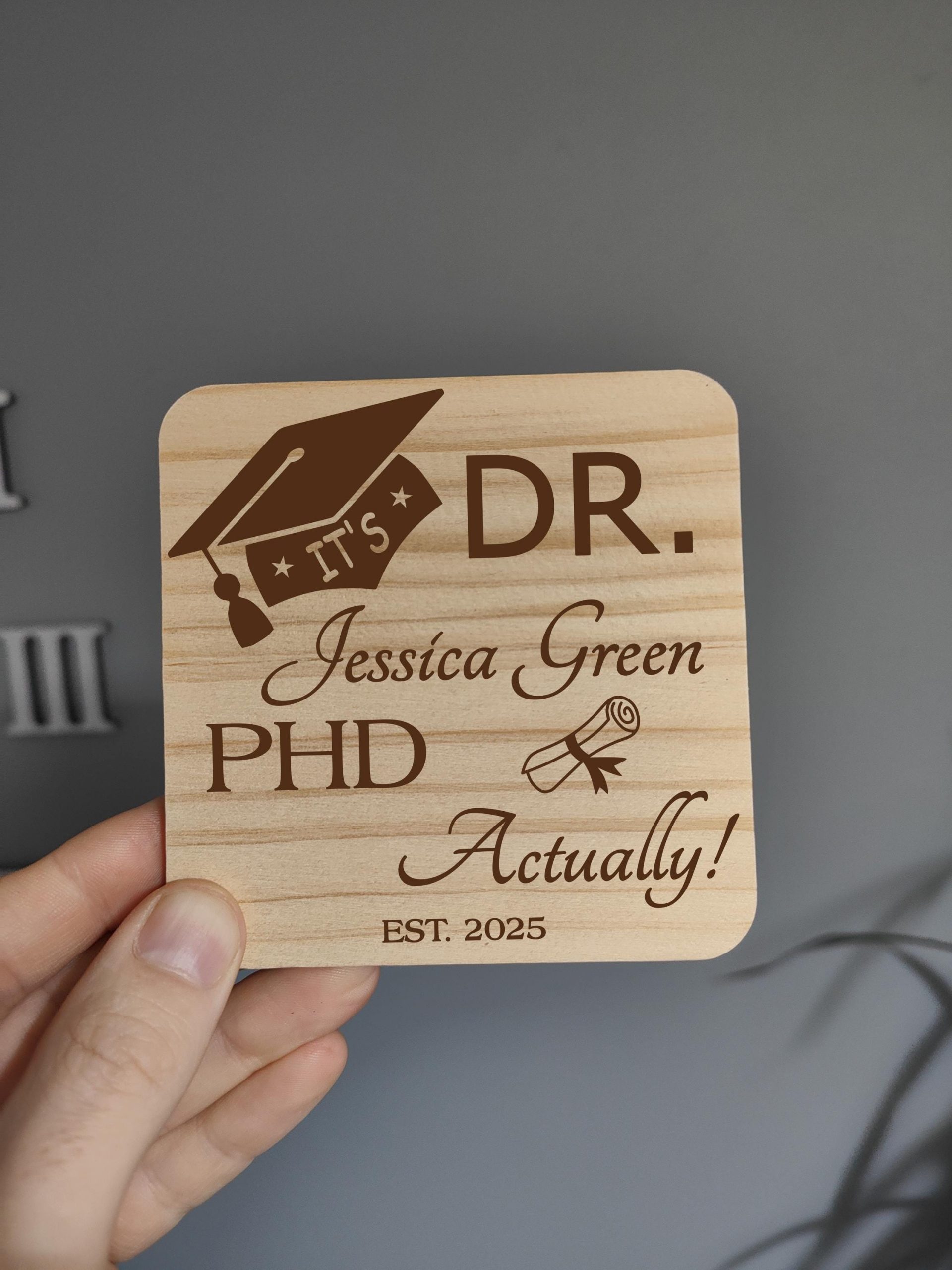 Celebrate someones PHD exam results and remind everyone that they are now a Doctor. Funny quirky gift for those that have just received their PHD or Doctorate pass at University. Perfect for any desk or space.