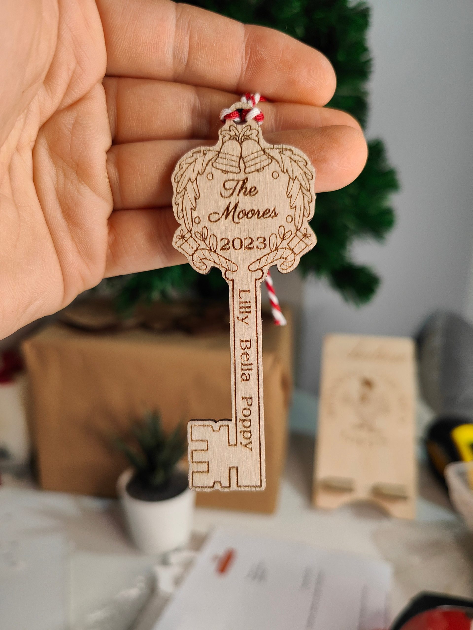 – 1 x Wooden Engraved Santas Key ornament