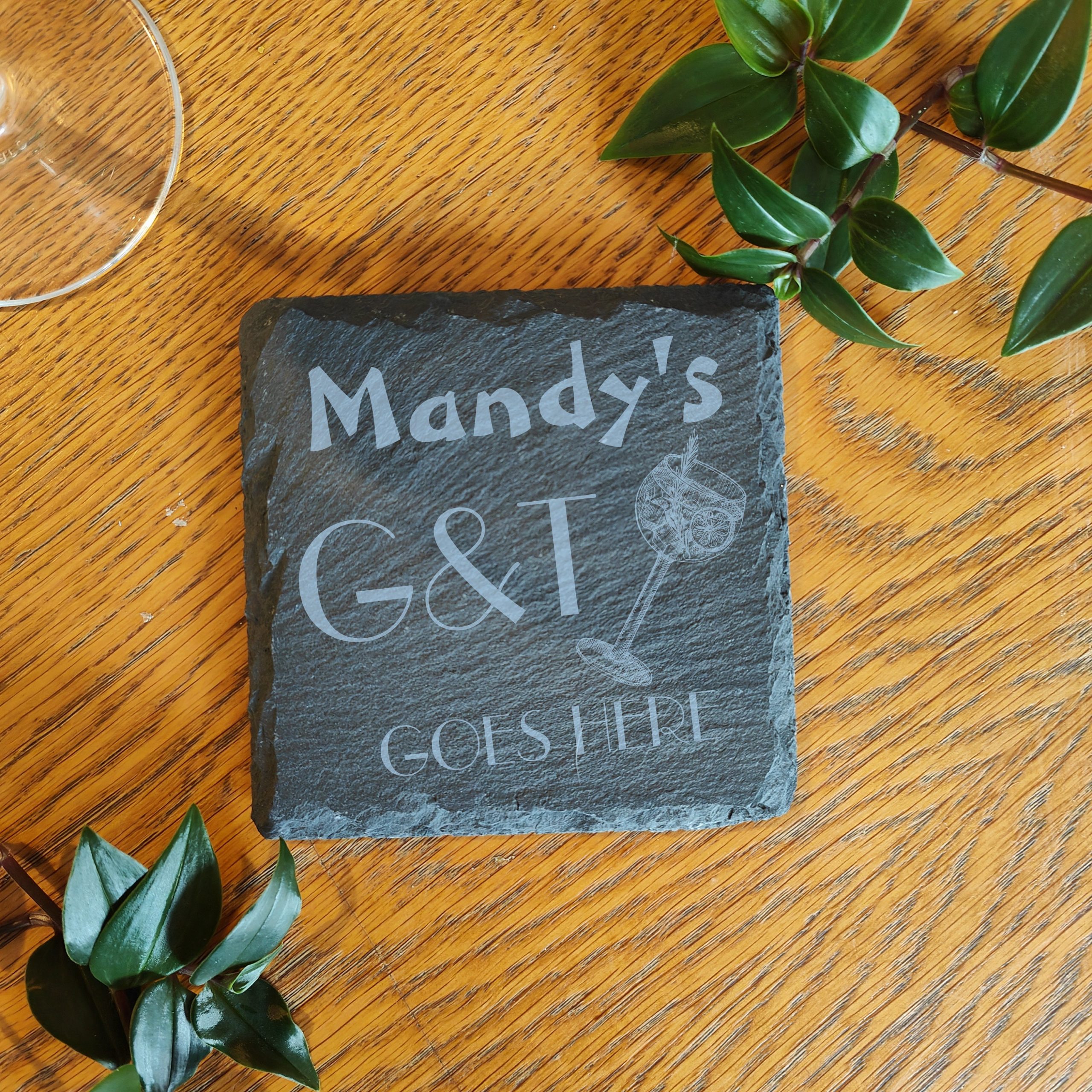 Personalised Slate Coaster: Laser Engraved Gin & Tonic Gift