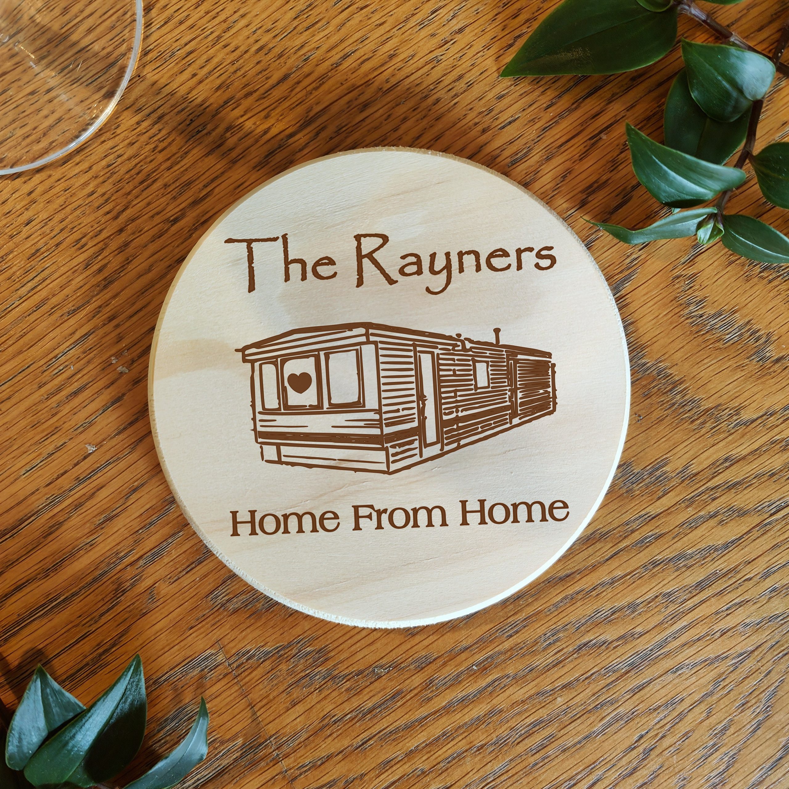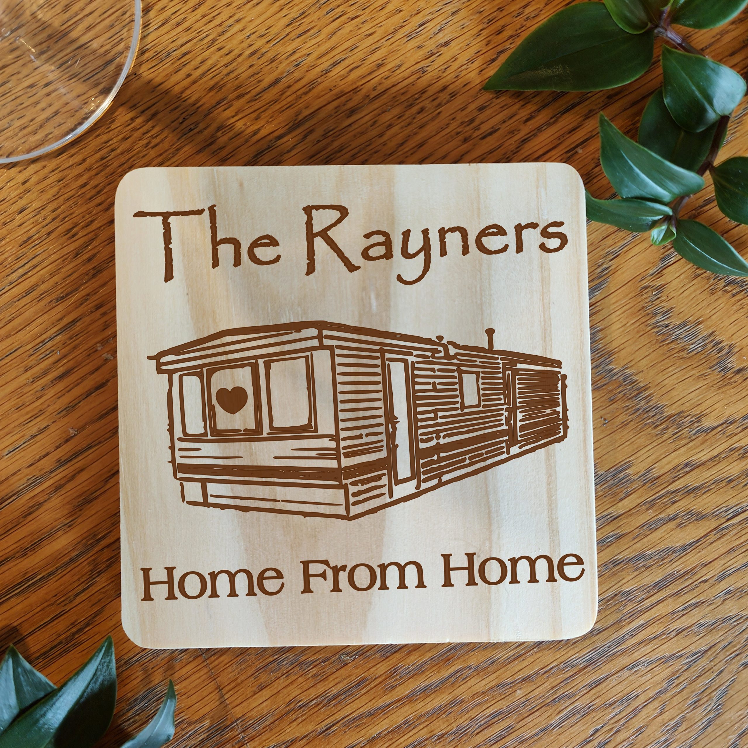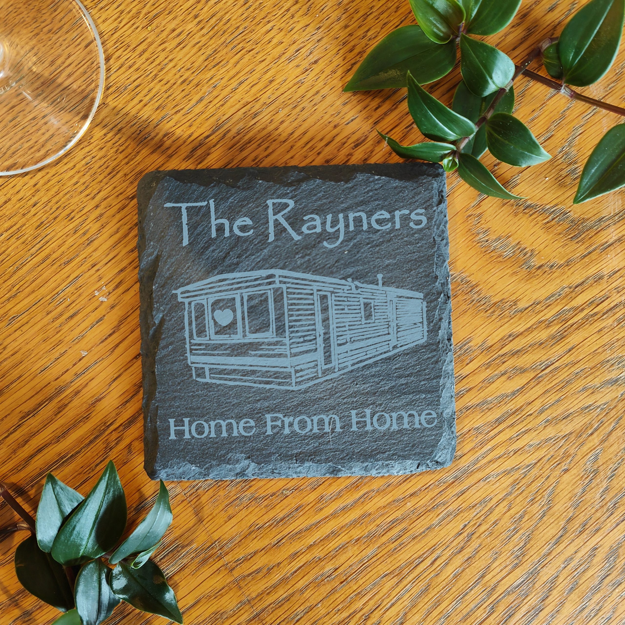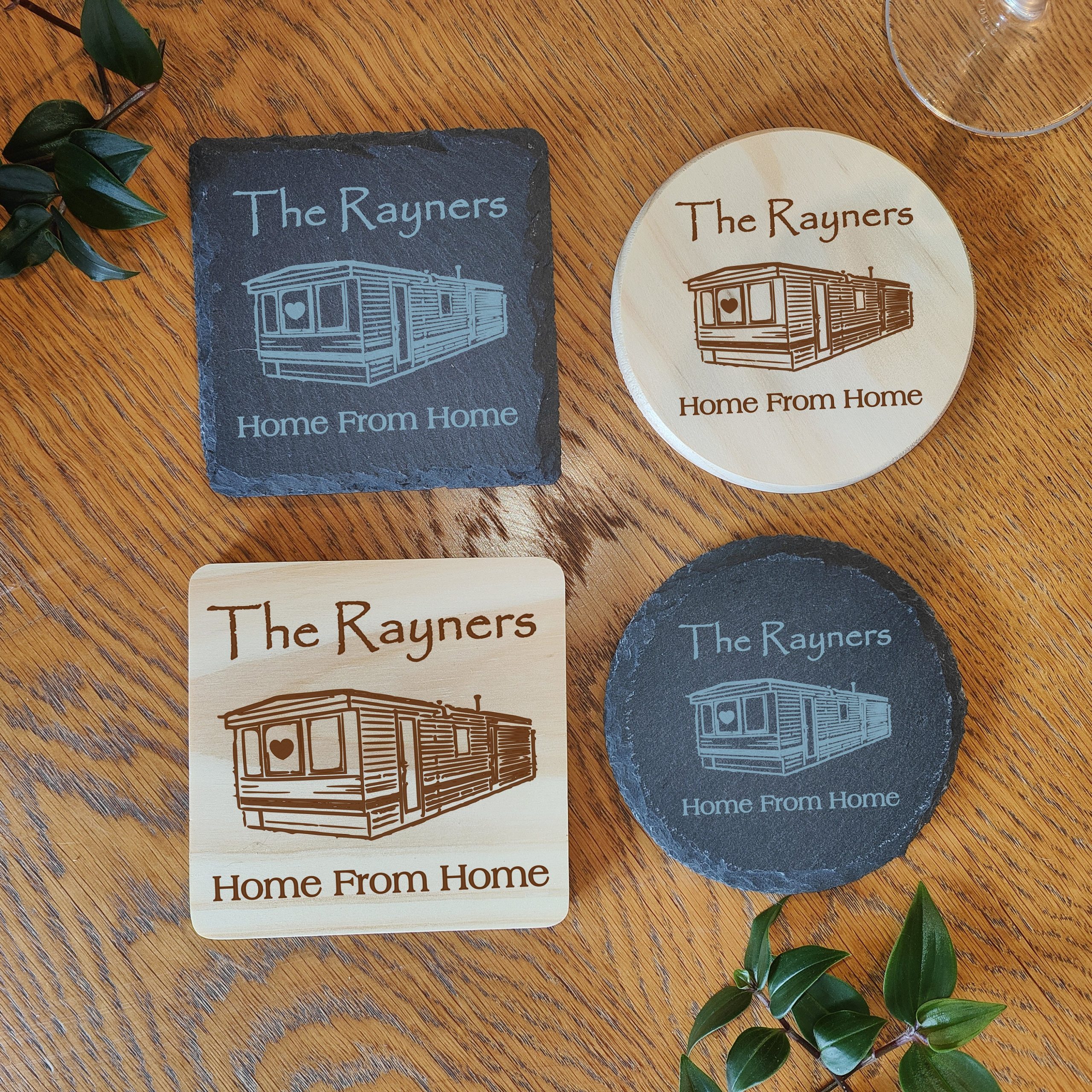 These Coasters makes a nice addition to any Coffee table in Your Home From Home. Perfect gift for Owners of Static Caravans, Camper vans or caravans. Any name or Text can be added, High quality Natural Slate or Pine Wood