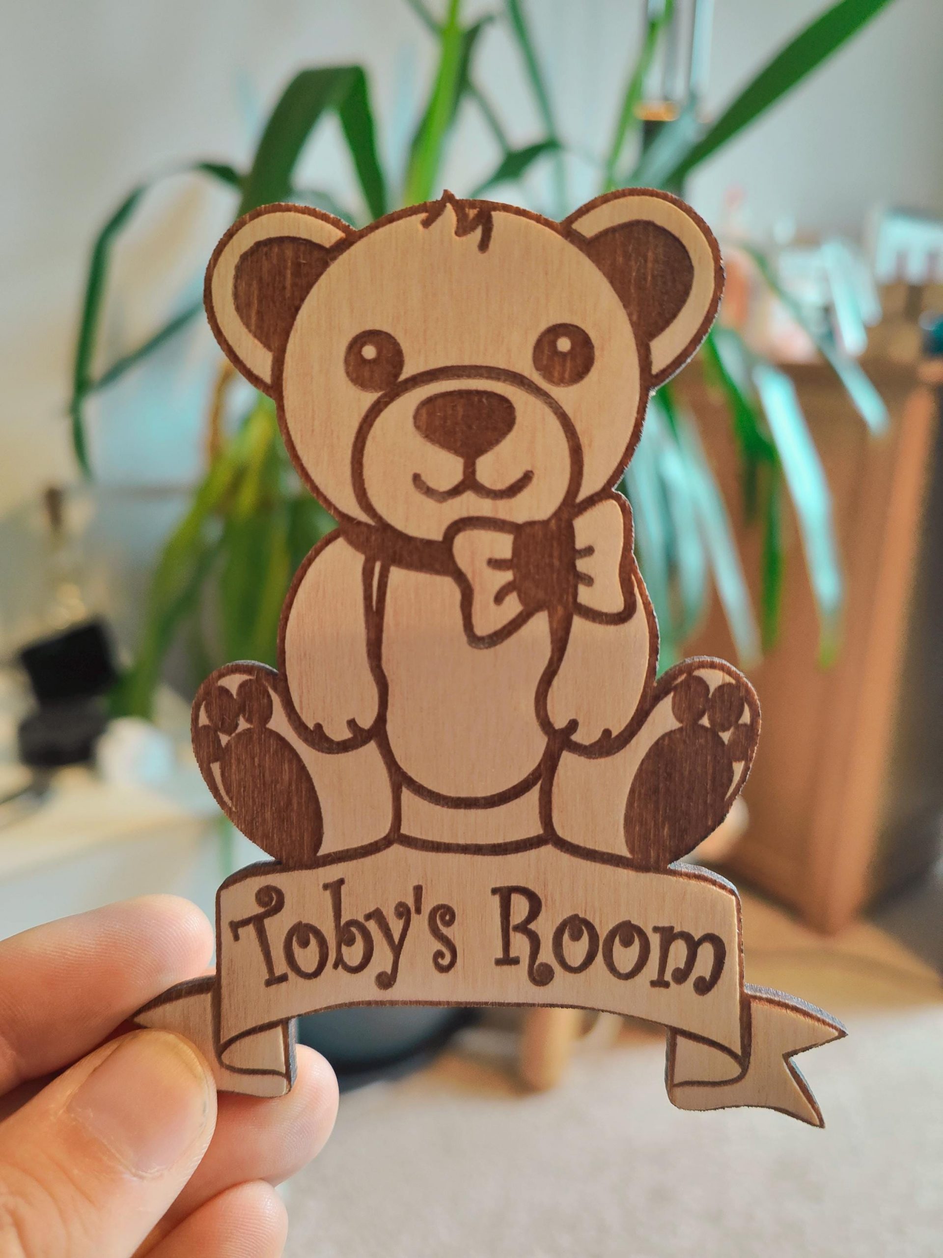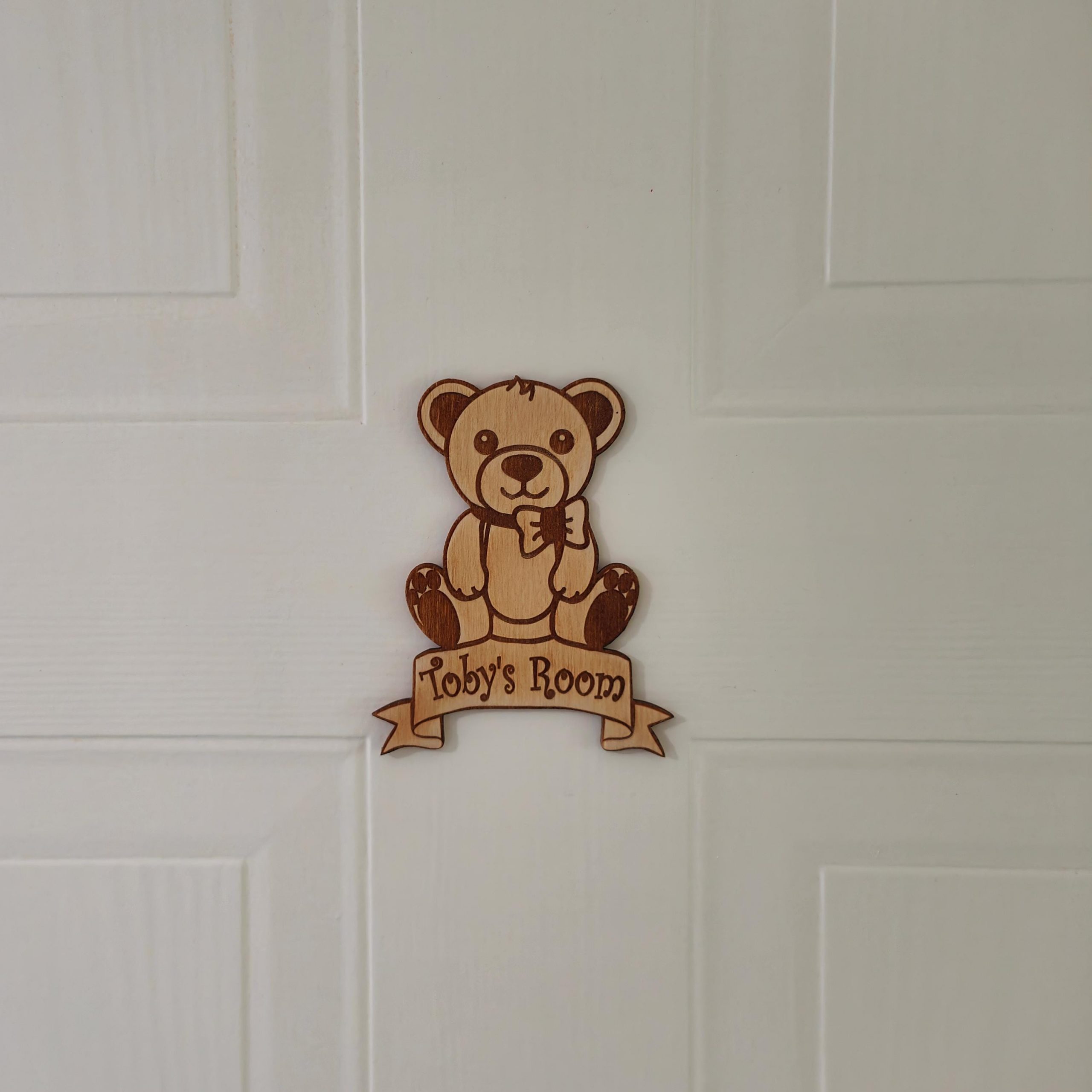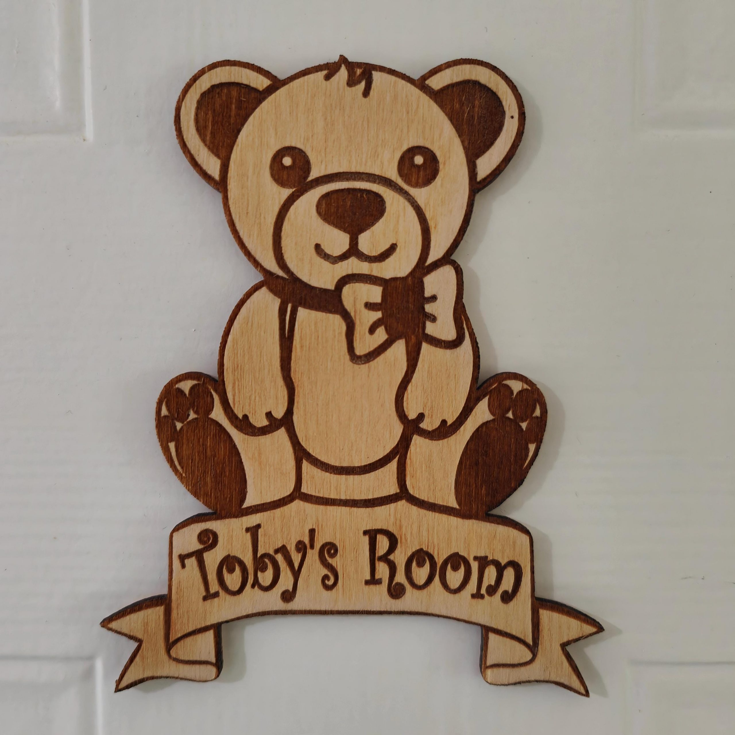 This adorable Teddy Bear bedroom door sign Gift, is a super cute addition to any childs room and is suitable for both boys and girls. Could also be used on the wall in a childs bedroom, a babys room or a nursery. It can be personalised with any name so if you fancied it for the play room door, or even the toy cupboard, just let us know in the personalisation section or drop us a message. We can easily do any animal of your choice, just ask!