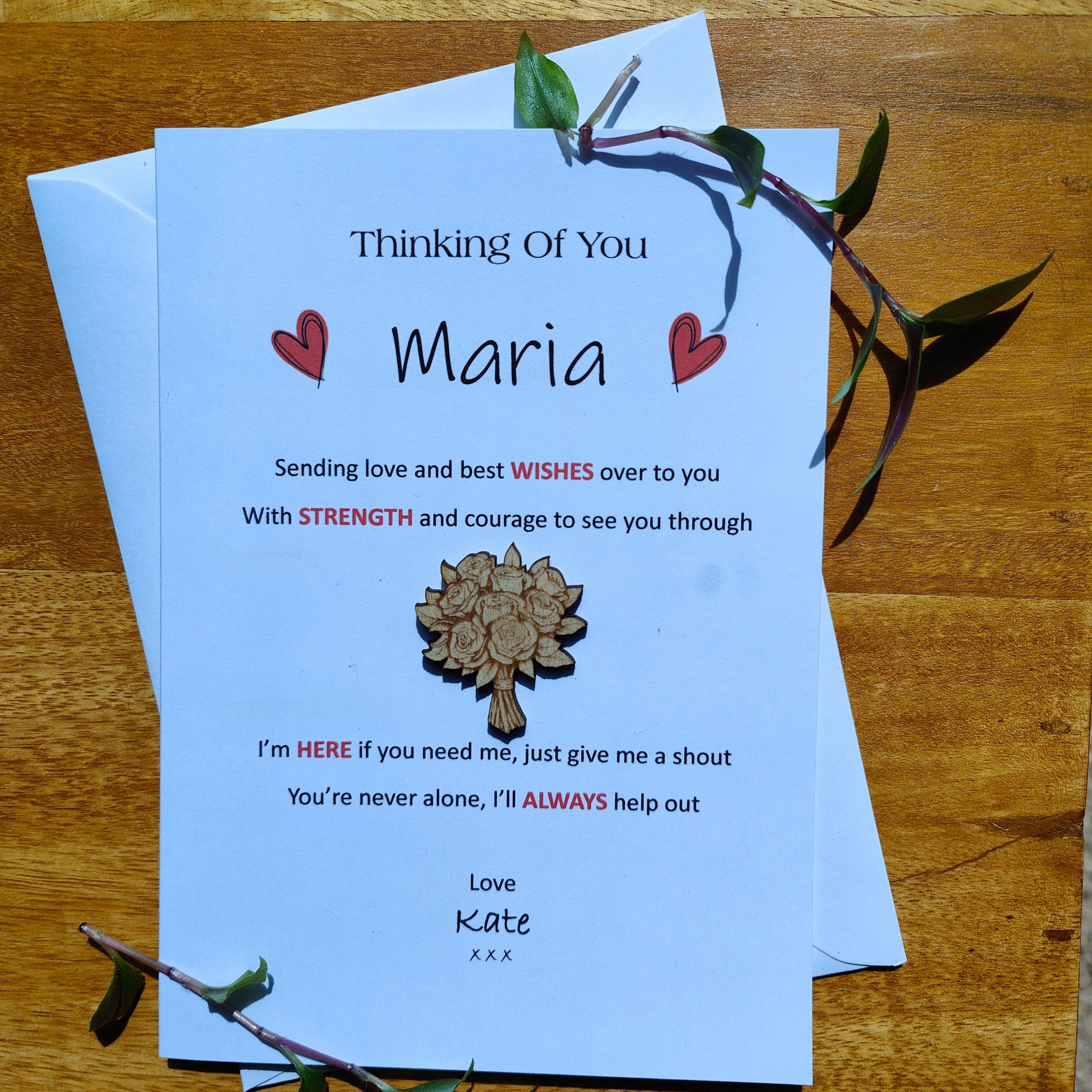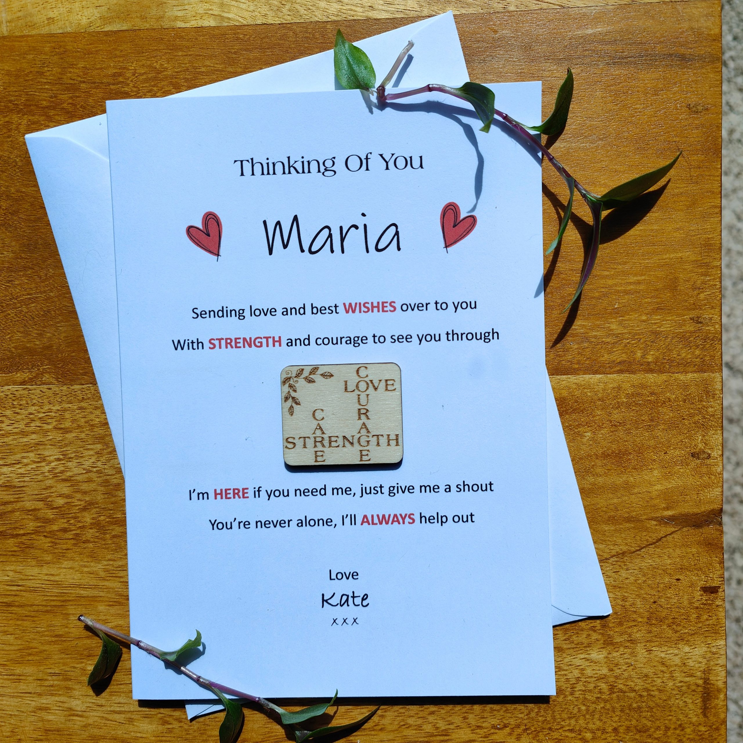 Our lives are full of difficult moments, from serious health conditions that require treatment, mental health or loss of loved ones. This card sends sympathy with a simple supportive message the we are thinking of you or them. Offering encouragement and courage while beating cancer or overcoming loss or disease. Each card comes with a sentimental keepsake the recipient can keep safe for support.