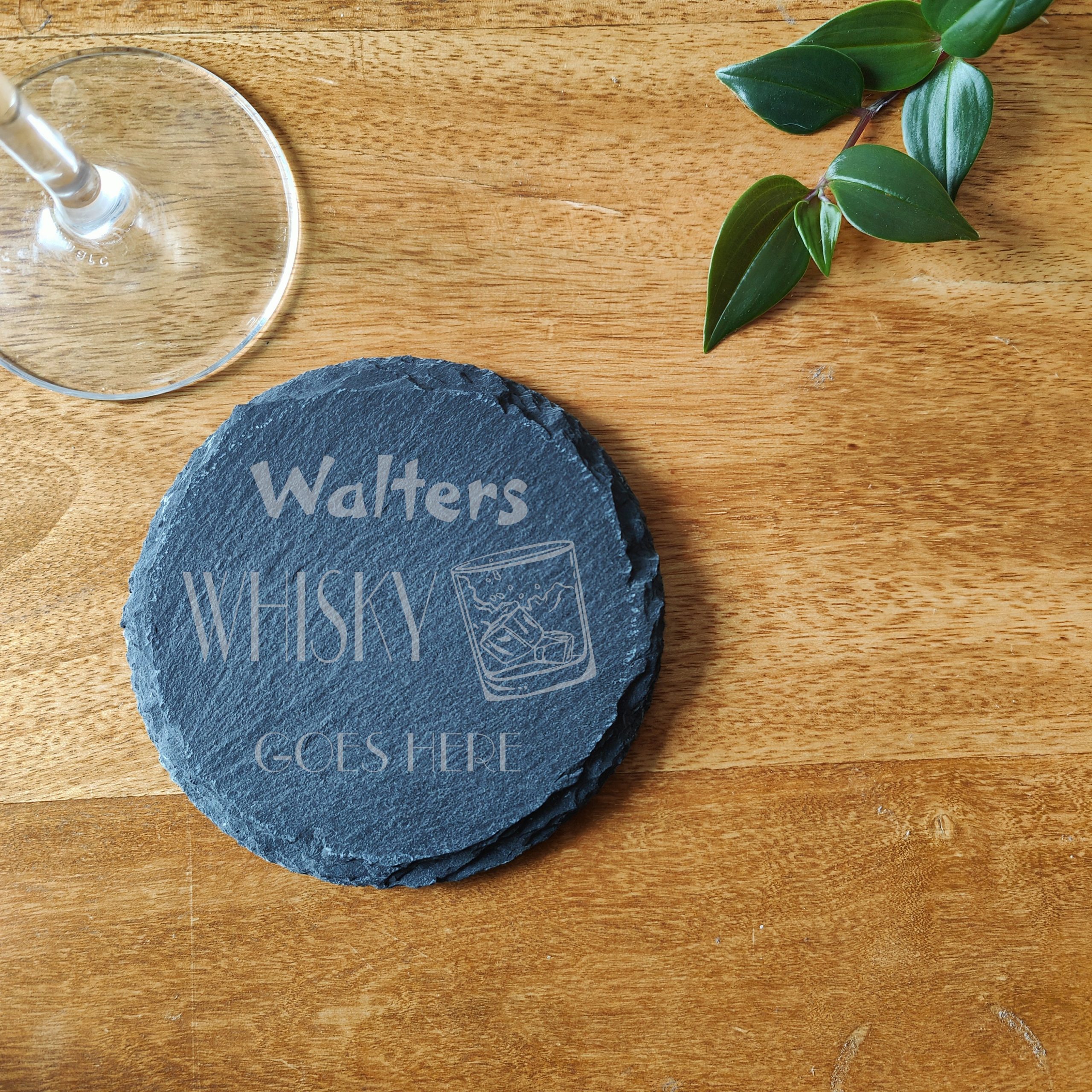 Personalised Whisky Coaster: Laser Engraved Natural Slate Gift