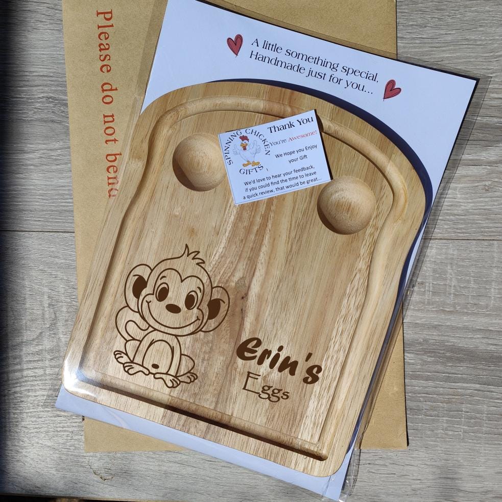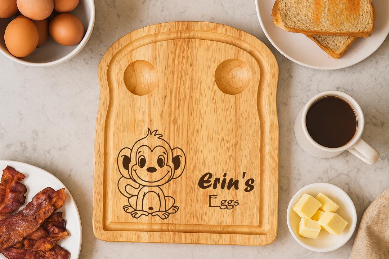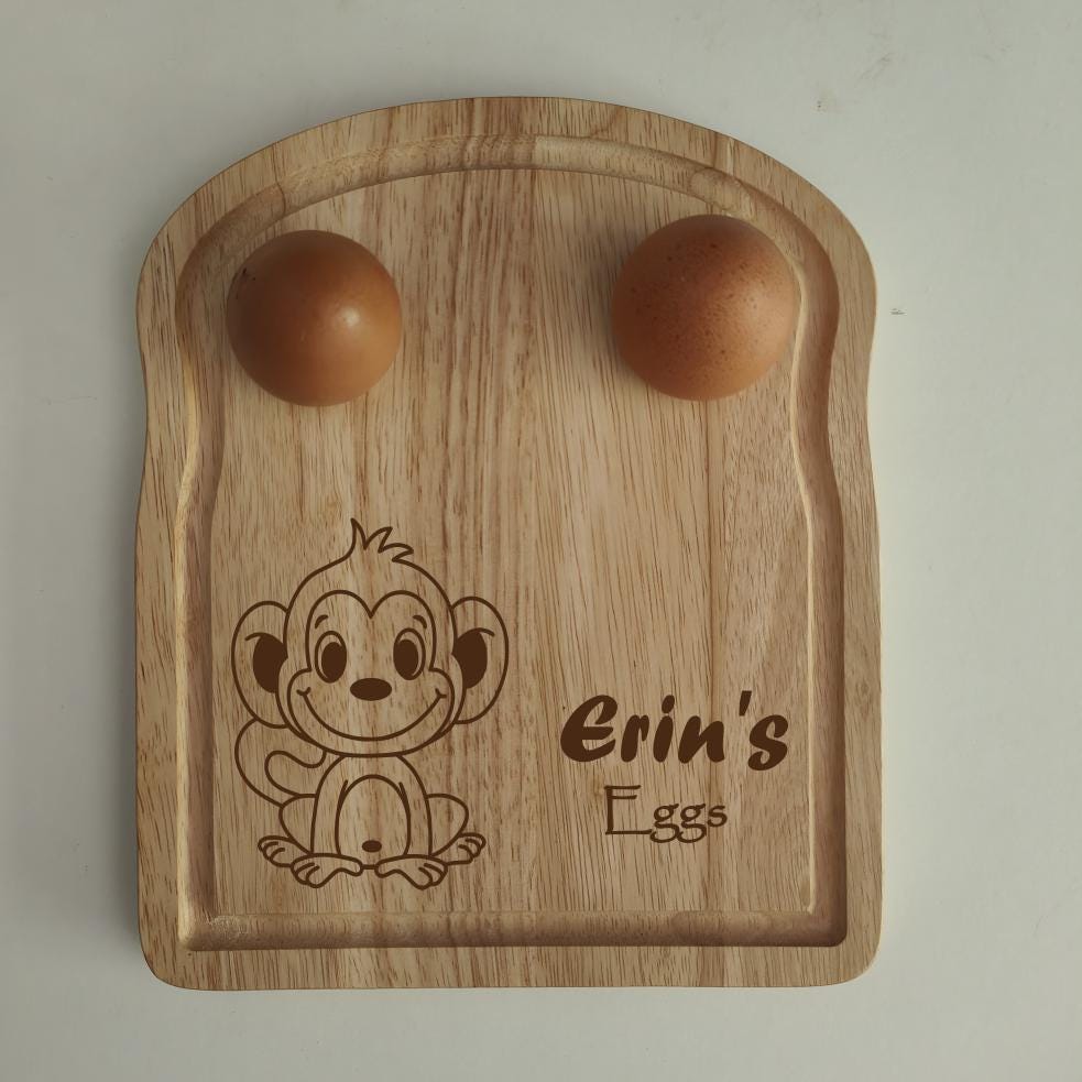 Personalised Wooden Cheeky Monkey Egg Board: Custom Kids Breakfast Gift