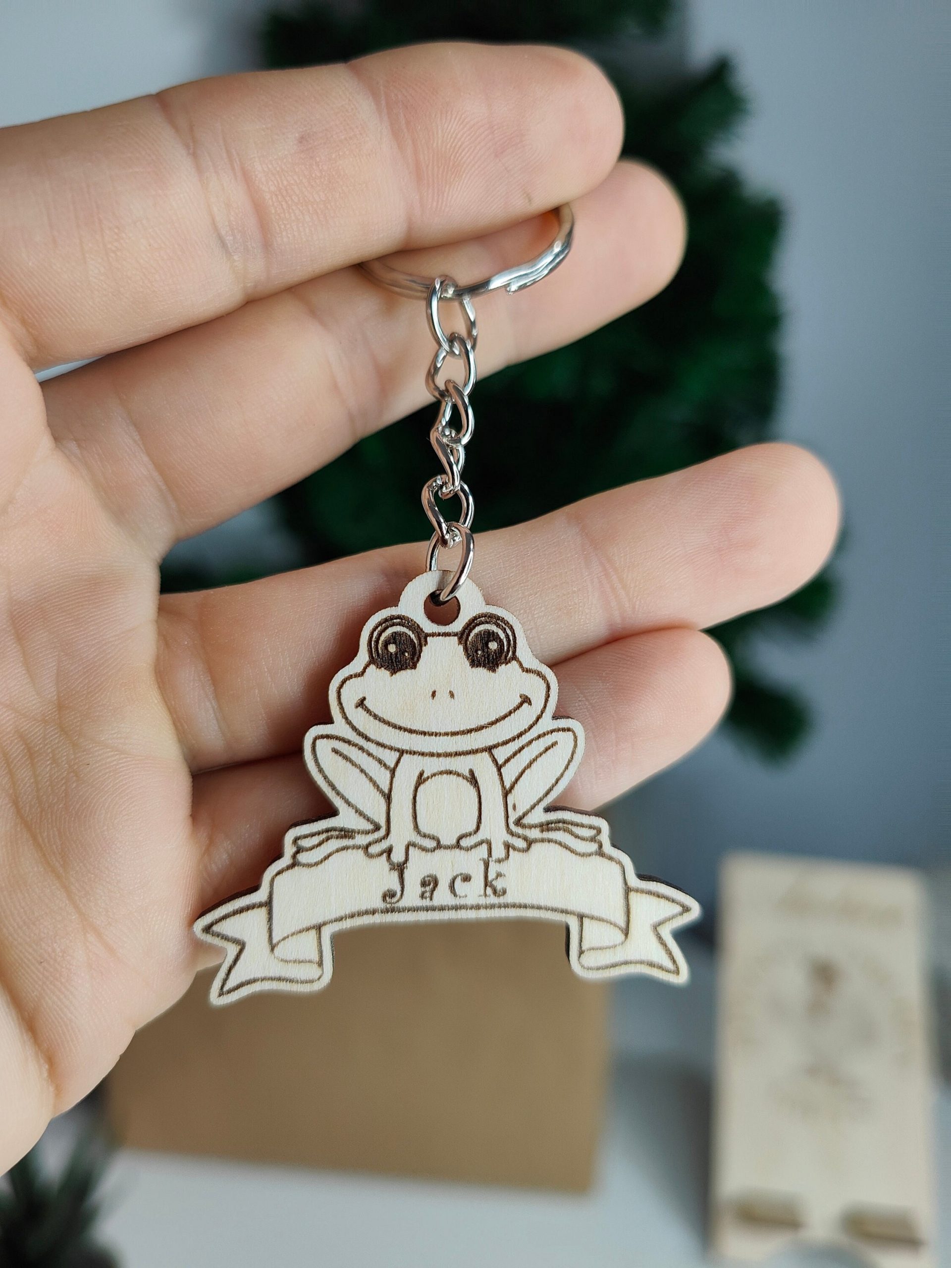 This adorable wooden frog keyring makes a fantastic gift for any occasion, whether its a birthday, christmas, anniversary or just somewhere new to keep you keys. This cute frog keyring can be personalised with any name and so makes a great back to school gift. It is ideal as a childrens bag tag, so the child can easily spot which book bag is theirs when they’re in reception and haven’t learned to read just yet. They spot the frog on their book bag tag and know which one is theirs. So whether it’s back to school or back to nursery, this bag tag is not only adorable but helps children identify their belongings. We have several animals available on other listings which are also available as bookmarks or fridge magnets. If you don’t see the animal you are looking for, drop us a message as we would be more than happy to find something for you.