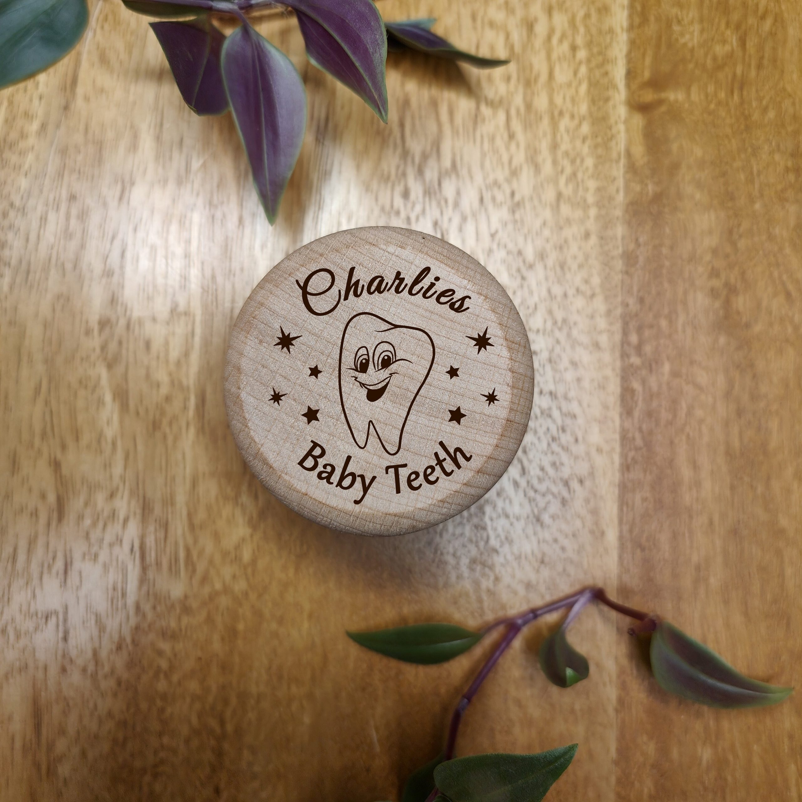 This cute round wooden tooth fairy box is ideal for those special tooth fairy visits. Place that special tooth in the box and leave it out for the tooth fairy. Can be personalised with the childs name for that extra special personalised touch.