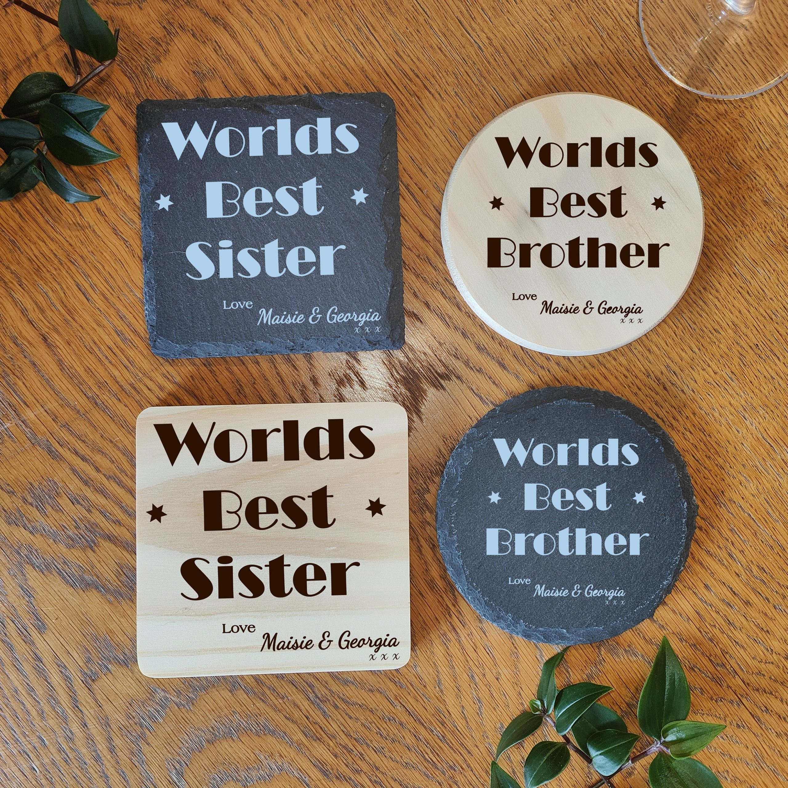 Personalised Worlds Best Brother or Sister Coaster for him or Her.