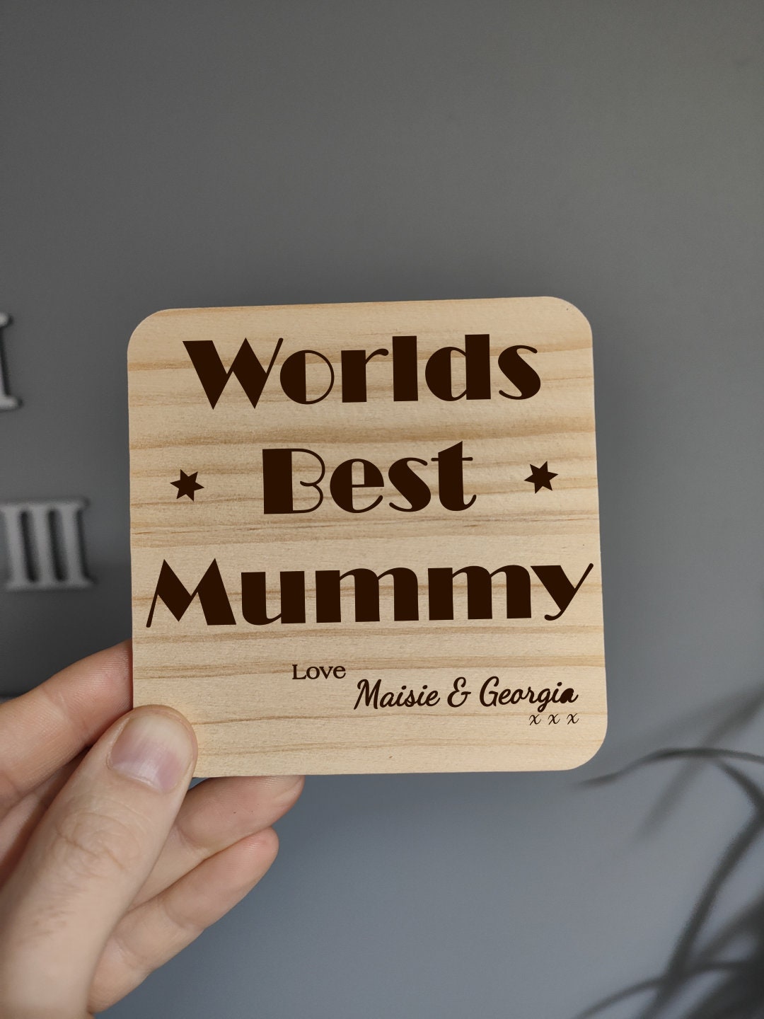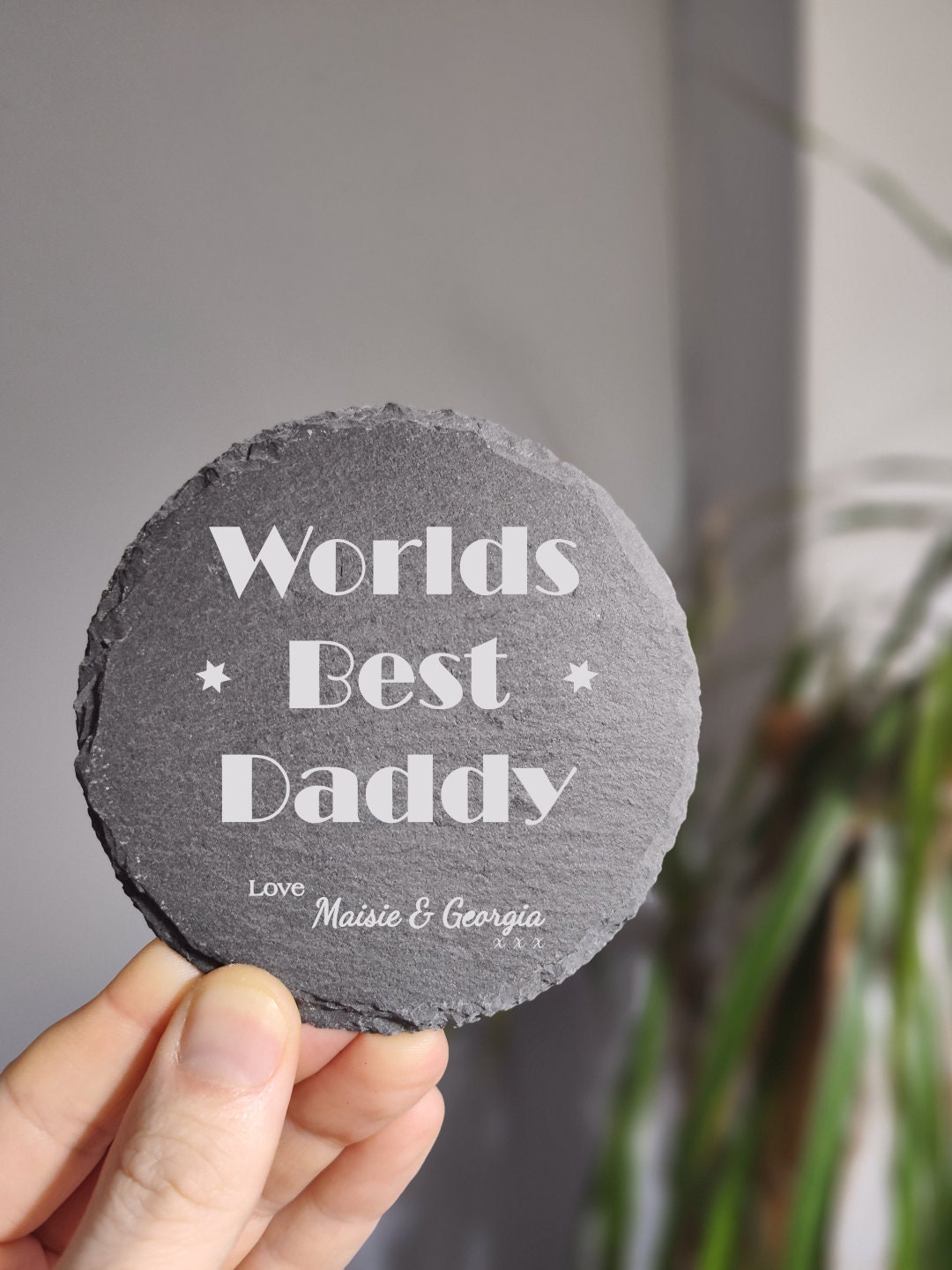 This adorable slate coaster with phrase ‘Worlds Best Mummy’ is ideal for a parents birthday, christmas, Mothers Day , Fathers Day or just to show you care. Ideal for the tea lover, the coffee lover or for their favourite tipple. For that extra special touch, personalise with the children’s names and make it extra special. We have designed this for an Mummy or Daddy but you could customise it to any name, Mam, Tad or Papa just let us know in the personalisation section or drop us a message, we would be more than happy to help.